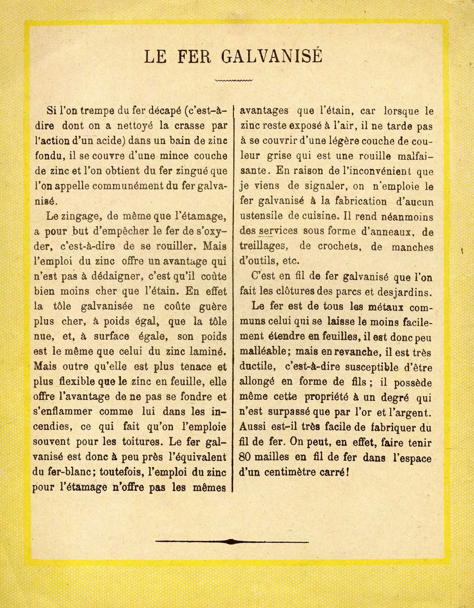 27 J 1-273 - Documents iconographiques issus de la collection Delmas (27 J) - XIVe siècle-sans date 27 J 259 27 J 259-19 - Connaissances utiles et leçons de choses : fer galvanisé. - Couleur - [vers 1900] 27 J 259-19, Connaissances utiles et leçons de choses : fer galvanisé. - Couleur 27 J 259-19, Connaissances utiles et leçons de choses : fer galvanisé. - Couleur Cote 27 J 259-19 Date [vers 1900] Mots-clés matière Science Fer Physique Cahier d'écolier Permalien de la notice https://archives.cantal.fr:443/ark:16075/a011343123394AzHiaW.moteur=arko_default_5fbd06a9ae86c