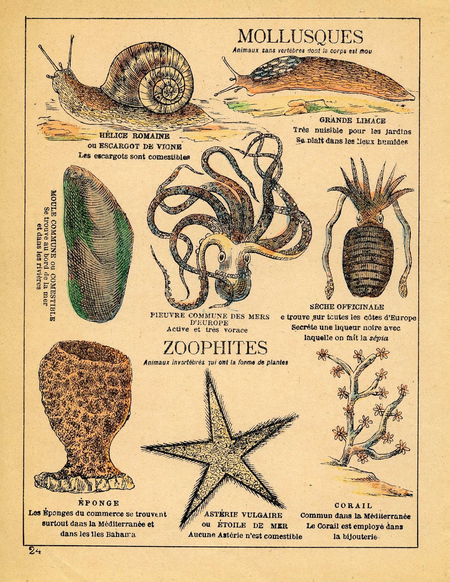 27 J 259-23, Histoire naturelle, classe des invertébrés : crustacés, mollusques, zoophites. - Couleur