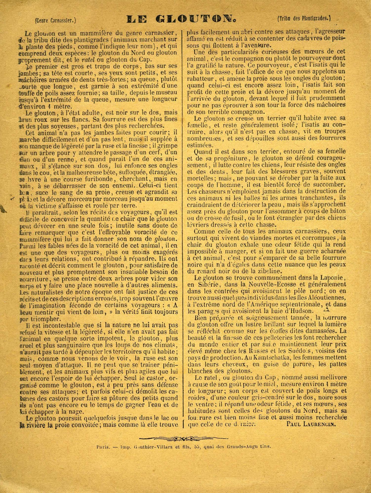 27 J 259-29, Histoire naturelle : le glouton. - Collection J. Garnier, librairie et papetterie classique G. Bonal à Aurillac. - Noir et blanc27 J 259-29, Histoire naturelle : le glouton. - Collection J. Garnier, librairie et papetterie classique G. Bonal à Aurillac. - Noir et blanc