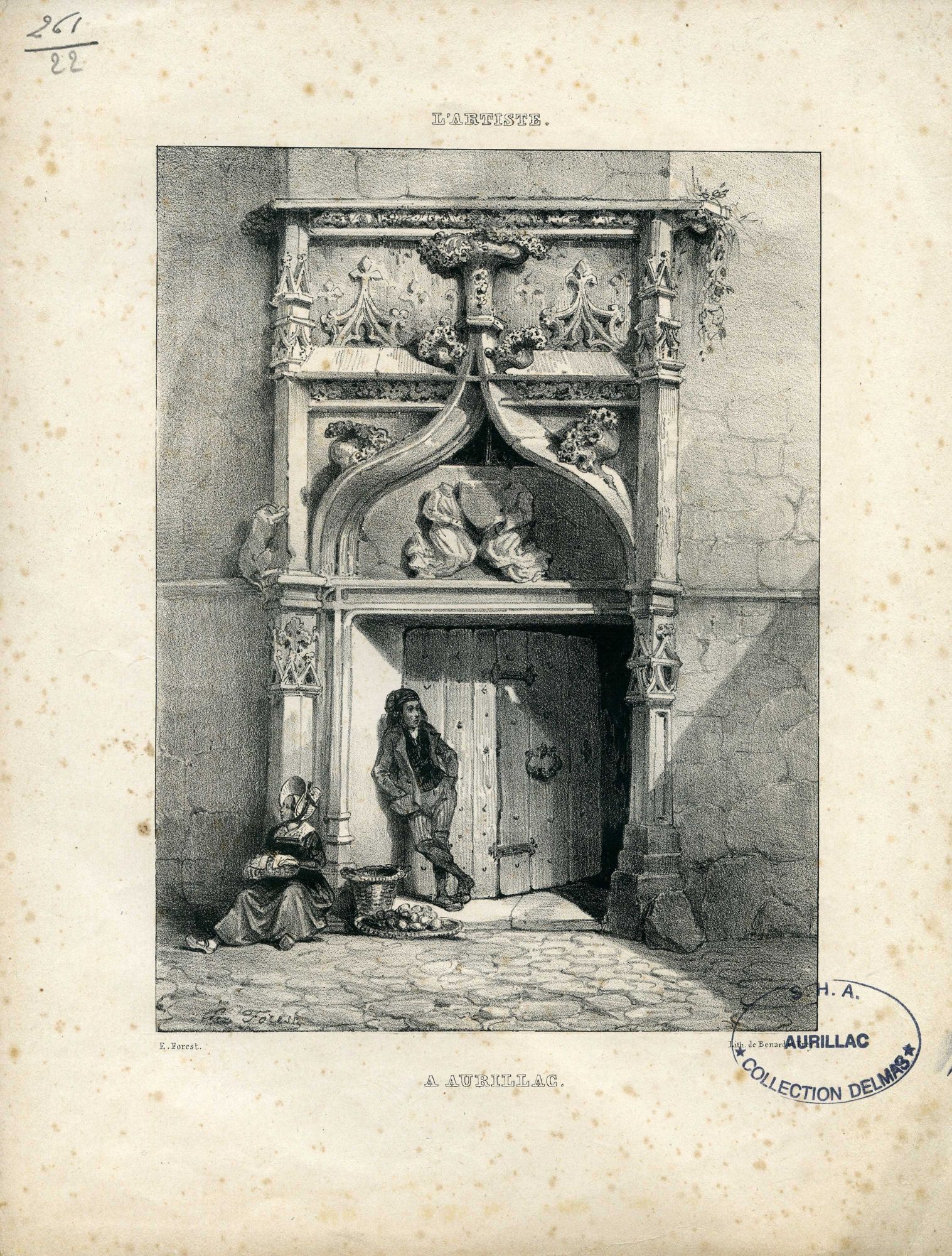 27 J 1-273 - Documents iconographiques issus de la collection Delmas (27 J) - XIVe siècle-sans date 27 J 261 27 J 261-22 - "L'artiste. A Aurillac", porche et deux personnages. - Dessin E. Forest, gravure de Bernard et Frey. - Noir et blanc - Sans date 27 J 261-22, "L'artiste. A Aurillac", porche et deux personnages. - Dessin E. Forest, gravure de Bernard et Frey. - Noir et blanc Cote 27 J 261-22 Date Sans date Mots-clés lieu Aurillac (Cantal, France) Mots-clés matière Porte Mots-clés personne Forest, Eugène (1808-1891) Bernard (graveur) Frey (graveur) Permalien de la notice https://archives.cantal.fr:443/ark:16075/a011343123394FXIJgi.moteur=arko_default_5fbd06a9ae86c