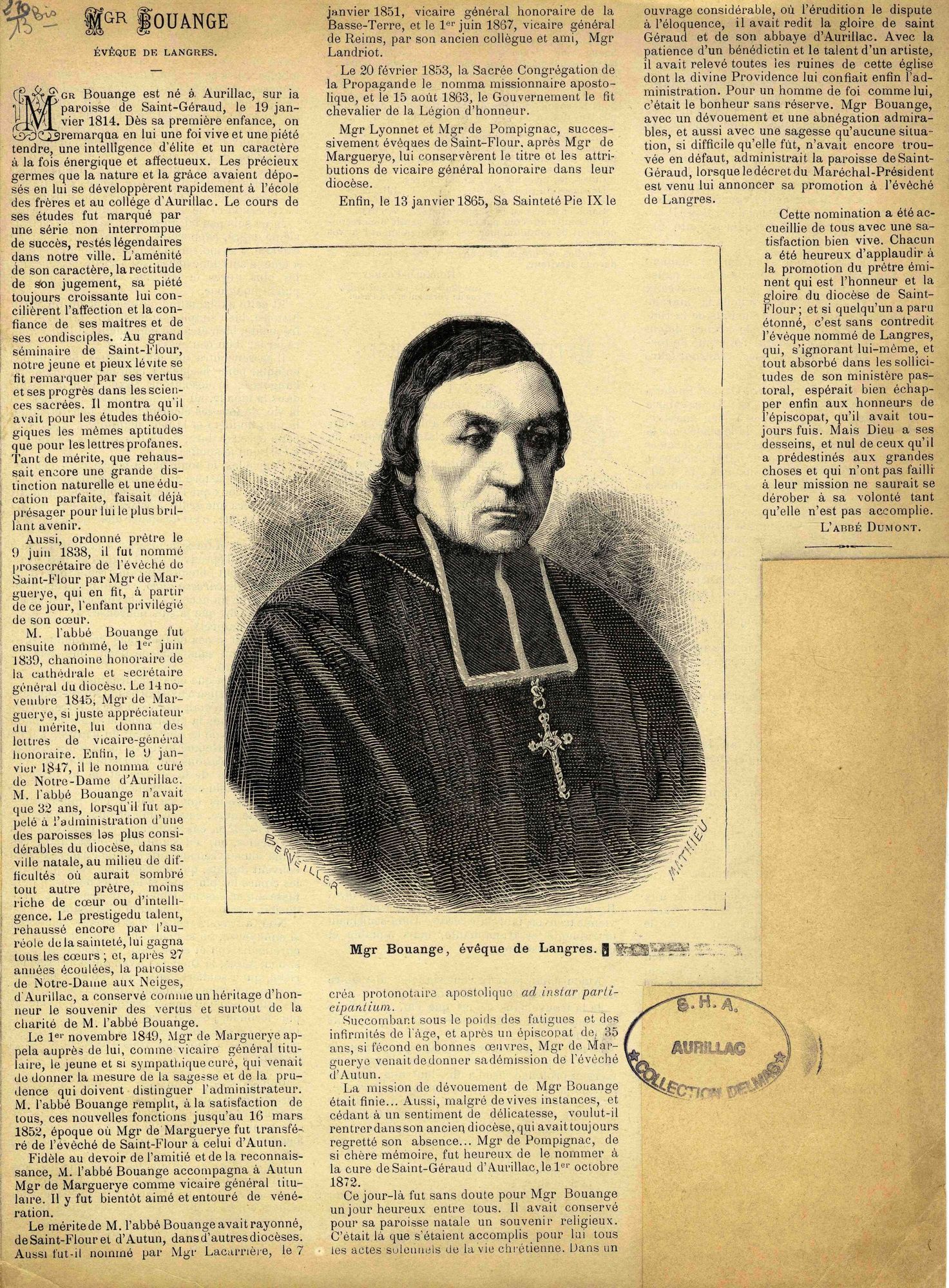 27 J 270-13, Portraits de Guillaume-Marie-Frédéric Bouange (1814-1877), né à Aurillac et évêque de Langres. - Noir et blanc