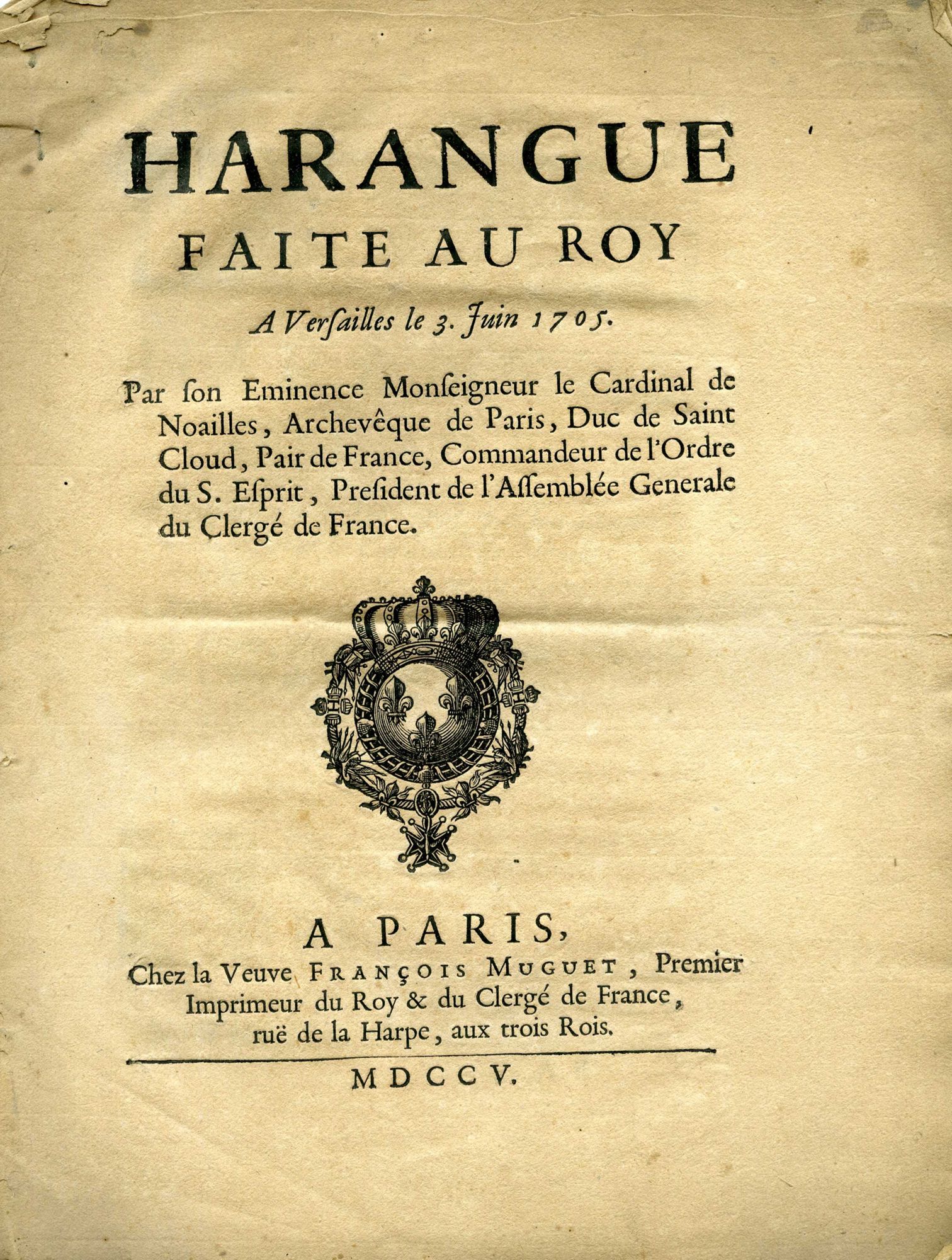 27 NUM 8, "Harangue faite au Roy à Versailles le 3 juin 1705 par Son Eminence Monseigneur le cardinal de Noailles, archevêque de Paris, duc de Saint Cloud, Pair de France, commandeur de l'Ordre du S. Esprit, President de l'Assemblée General du Clergé de France", à l'occasion de l'assemblée du clergé de France. Paris, veuve de François Muguet, 1705.27 NUM 8, "Harangue faite au Roy à Versailles le 3 juin 1705 par Son Eminence Monseigneur le cardinal de Noailles, archevêque de Paris, duc de Saint Cloud, Pair de France, commandeur de l'Ordre du S. Esprit, President de l'Assemblée General du Clergé de France", à l'occasion de l'assemblée du clergé de France. Paris, veuve de François Muguet, 1705.27 NUM 8, "Harangue faite au Roy à Versailles le 3 juin 1705 par Son Eminence Monseigneur le cardinal de Noailles, archevêque de Paris, duc de Saint Cloud, Pair de France, commandeur de l'Ordre du S. Esprit, President de l'Assemblée General du Clergé de France", à l'occasion de l'assemblée du clergé de France. Paris, veuve de François Muguet, 1705.27 NUM 8, "Harangue faite au Roy à Versailles le 3 juin 1705 par Son Eminence Monseigneur le cardinal de Noailles, archevêque de Paris, duc de Saint Cloud, Pair de France, commandeur de l'Ordre du S. Esprit, President de l'Assemblée General du Clergé de France", à l'occasion de l'assemblée du clergé de France. Paris, veuve de François Muguet, 1705.27 NUM 8, "Harangue faite au Roy à Versailles le 3 juin 1705 par Son Eminence Monseigneur le cardinal de Noailles, archevêque de Paris, duc de Saint Cloud, Pair de France, commandeur de l'Ordre du S. Esprit, President de l'Assemblée General du Clergé de France", à l'occasion de l'assemblée du clergé de France. Paris, veuve de François Muguet, 1705.27 NUM 8, "Harangue faite au Roy à Versailles le 3 juin 1705 par Son Eminence Monseigneur le cardinal de Noailles, archevêque de Paris, duc de Saint Cloud, Pair de France, commandeur de l'Ordre du S. Esprit, President de l'Assemblée General du Clergé de France", à l'occasion de l'assemblée du clergé de France. Paris, veuve de François Muguet, 1705.27 NUM 8, "Harangue faite au Roy à Versailles le 3 juin 1705 par Son Eminence Monseigneur le cardinal de Noailles, archevêque de Paris, duc de Saint Cloud, Pair de France, commandeur de l'Ordre du S. Esprit, President de l'Assemblée General du Clergé de France", à l'occasion de l'assemblée du clergé de France. Paris, veuve de François Muguet, 1705.27 NUM 8, "Harangue faite au Roy à Versailles le 3 juin 1705 par Son Eminence Monseigneur le cardinal de Noailles, archevêque de Paris, duc de Saint Cloud, Pair de France, commandeur de l'Ordre du S. Esprit, President de l'Assemblée General du Clergé de France", à l'occasion de l'assemblée du clergé de France. Paris, veuve de François Muguet, 1705.27 NUM 8, "Harangue faite au Roy à Versailles le 3 juin 1705 par Son Eminence Monseigneur le cardinal de Noailles, archevêque de Paris, duc de Saint Cloud, Pair de France, commandeur de l'Ordre du S. Esprit, President de l'Assemblée General du Clergé de France", à l'occasion de l'assemblée du clergé de France. Paris, veuve de François Muguet, 1705.27 NUM 8, "Harangue faite au Roy à Versailles le 3 juin 1705 par Son Eminence Monseigneur le cardinal de Noailles, archevêque de Paris, duc de Saint Cloud, Pair de France, commandeur de l'Ordre du S. Esprit, President de l'Assemblée General du Clergé de France", à l'occasion de l'assemblée du clergé de France. Paris, veuve de François Muguet, 1705.27 NUM 8, "Harangue faite au Roy à Versailles le 3 juin 1705 par Son Eminence Monseigneur le cardinal de Noailles, archevêque de Paris, duc de Saint Cloud, Pair de France, commandeur de l'Ordre du S. Esprit, President de l'Assemblée General du Clergé de France", à l'occasion de l'assemblée du clergé de France. Paris, veuve de François Muguet, 1705.27 NUM 8, "Harangue faite au Roy à Versailles le 3 juin 1705 par Son Eminence Monseigneur le cardinal de Noailles, archevêque de Paris, duc de Saint Cloud, Pair de France, commandeur de l'Ordre du S. Esprit, President de l'Assemblée General du Clergé de France", à l'occasion de l'assemblée du clergé de France. Paris, veuve de François Muguet, 1705.