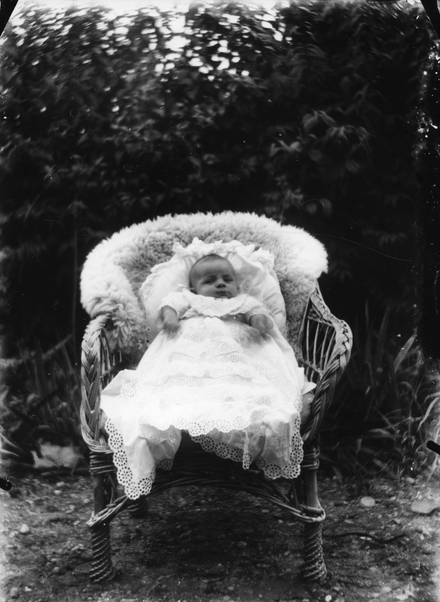 36 Fi 3, Portrait d'un bébé (Jean-Jérôme de Ribier ?) couché dans un fauteuil en osier. - 13 x 18 cm.