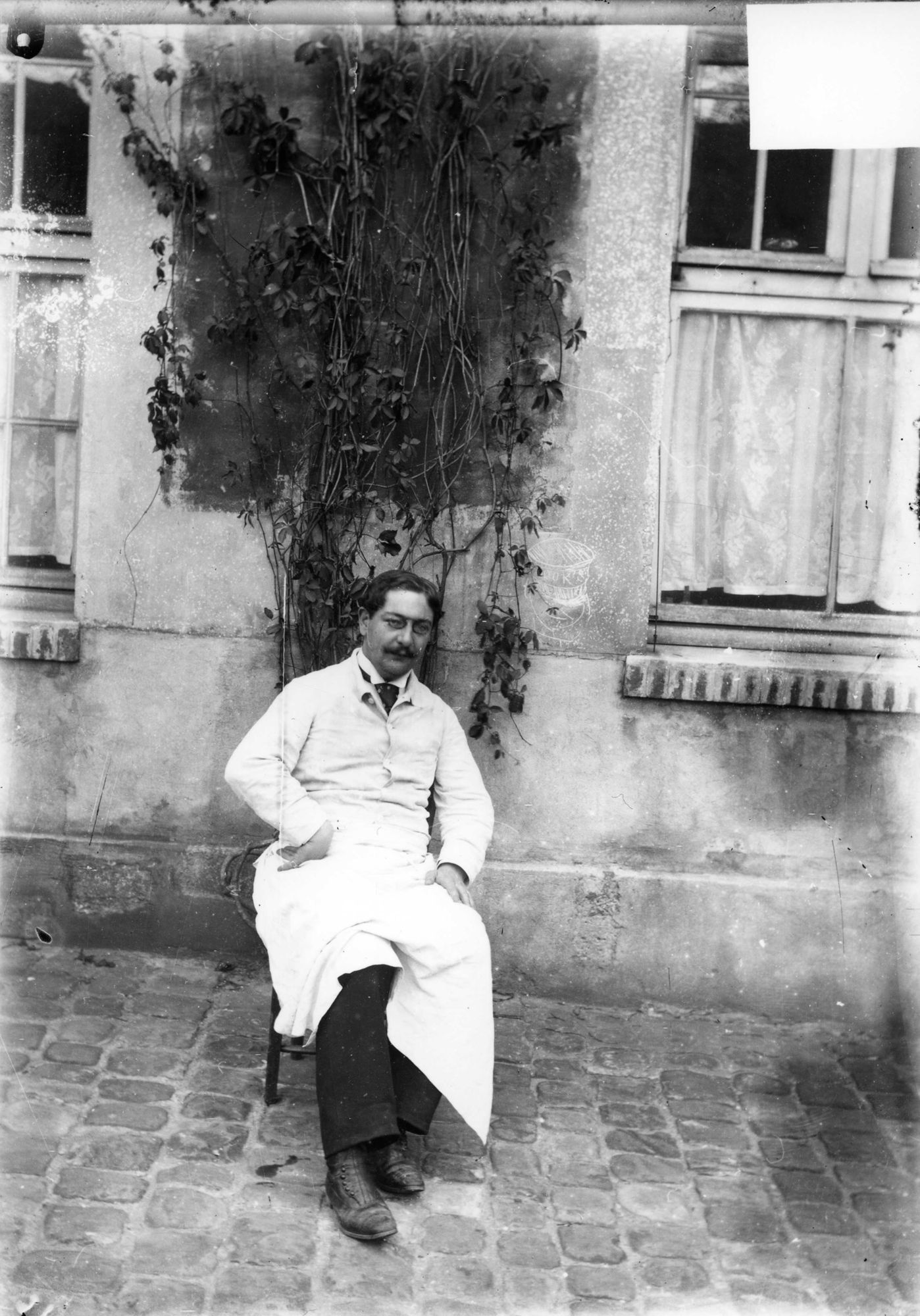 36 Fi 18, Portrait du docteur Louis de Ribier (1876-1936), assis en blouse blanche, à l'hôpital de la Pitié Salpetrière à Paris. - 13 x 18 cm.