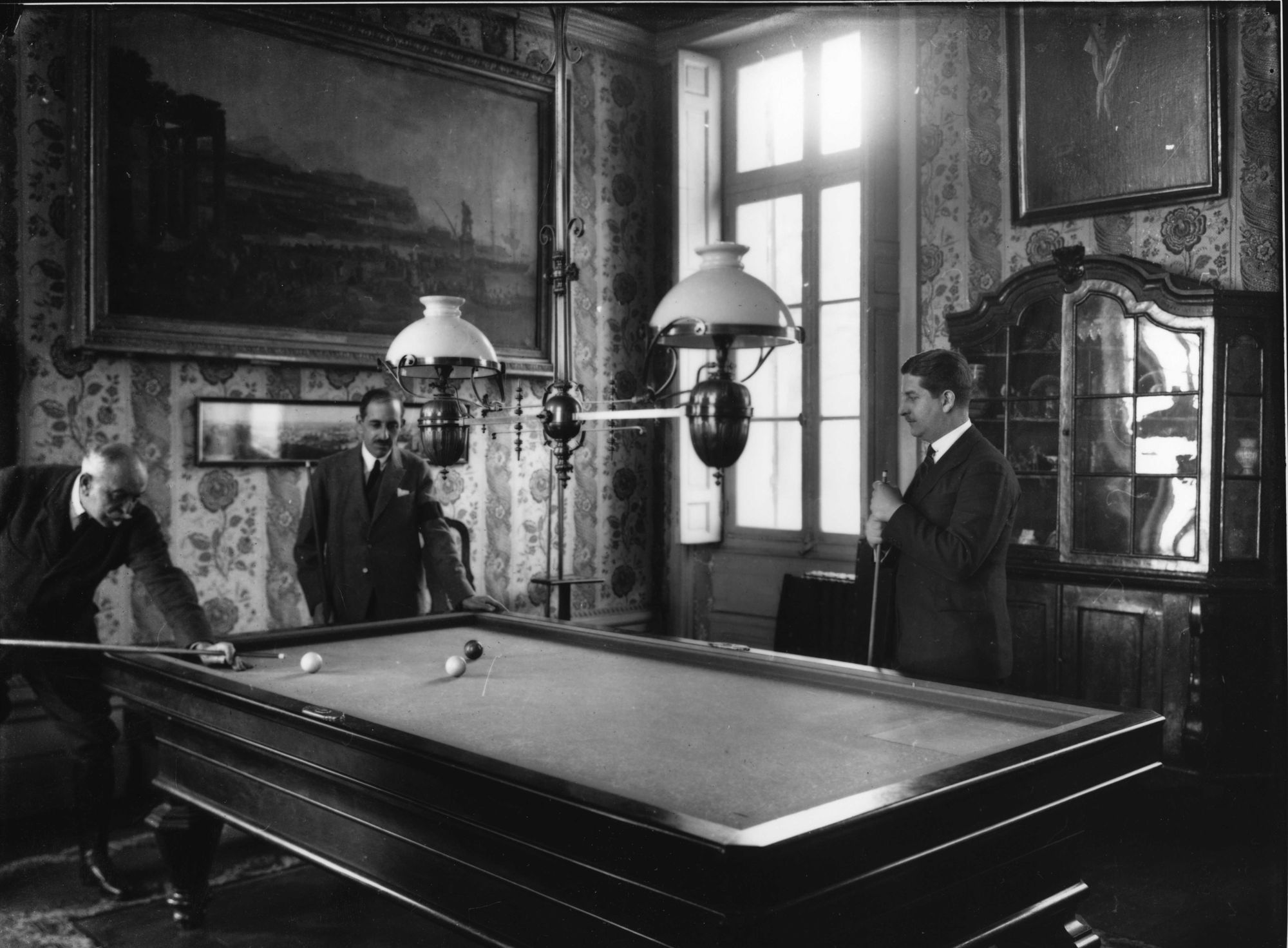 36 Fi 70, Scène représentant trois hommes jouant une partie de billard français. - 18 x 24 cm.