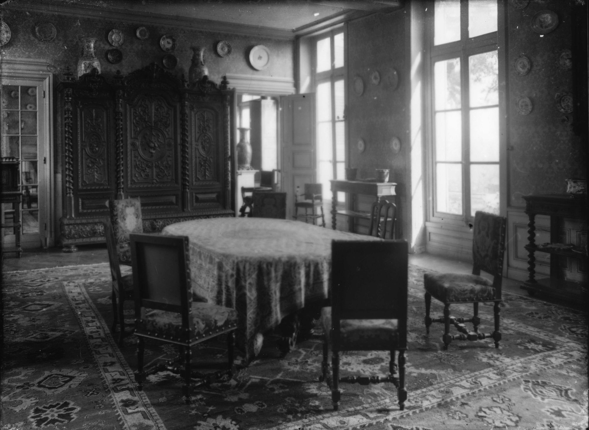36 Fi 72, Salle à manger et son mobilier au château de Chamfleury à Carrières-sous-Poissy (Yvelines). - 18 x 24 cm.