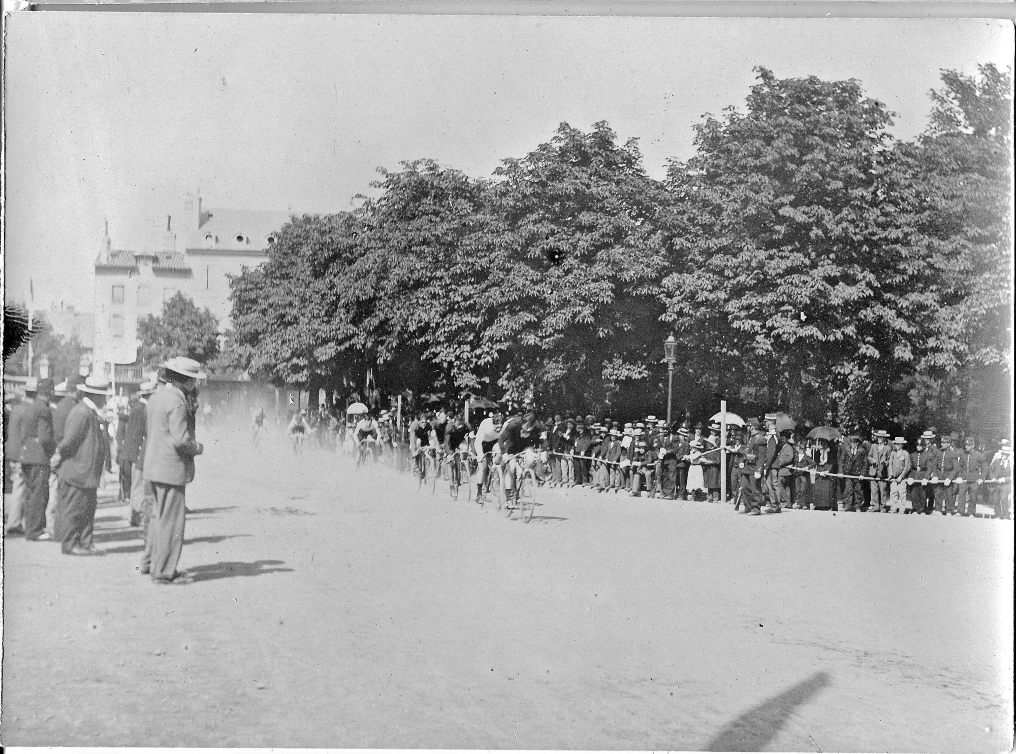 36 NUM 136-137, Courses de vélo : foule admirant les cyclistes autour du Square