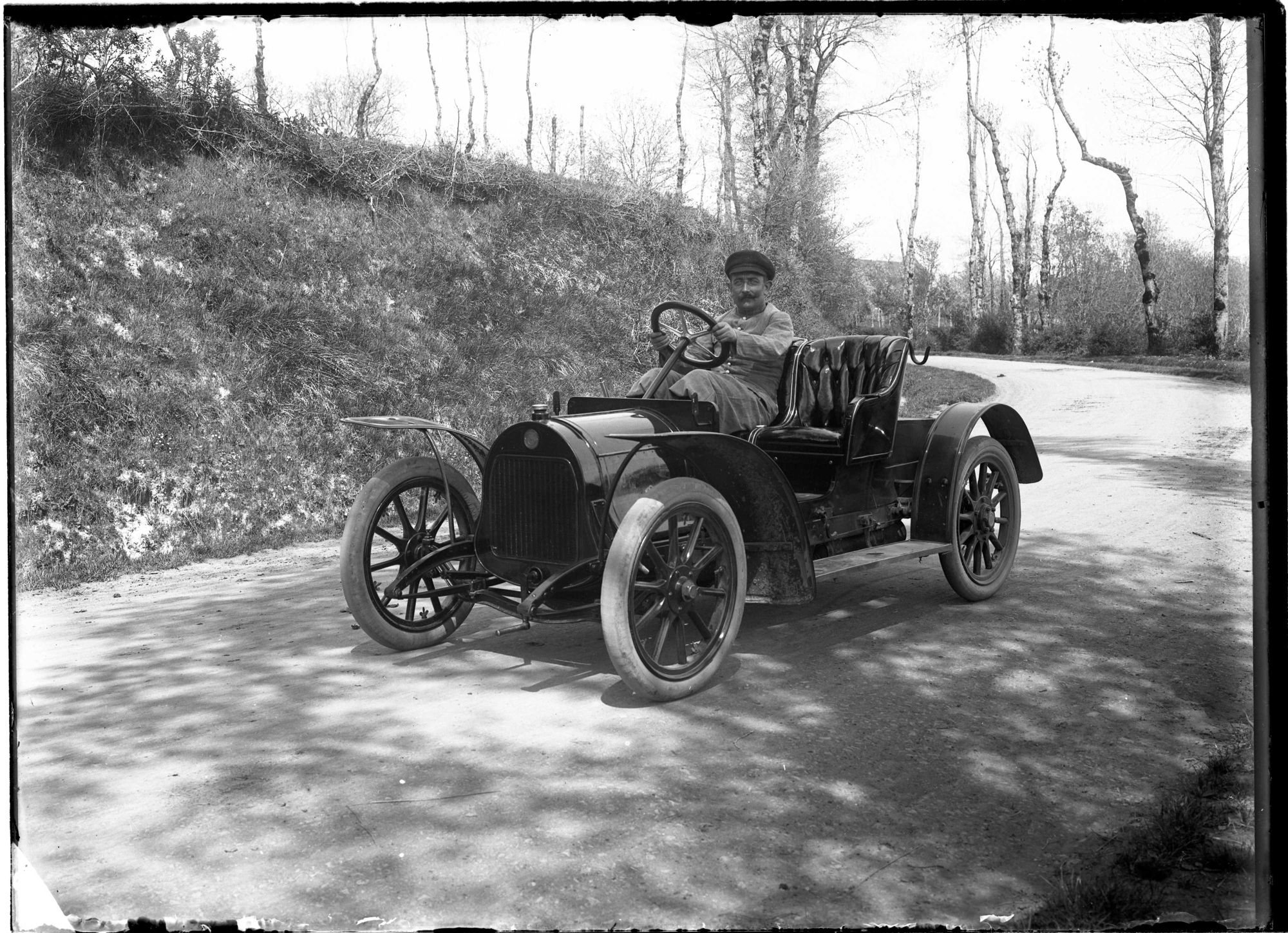 36 NUM 504, Pilote au volant de son automobile sur une route