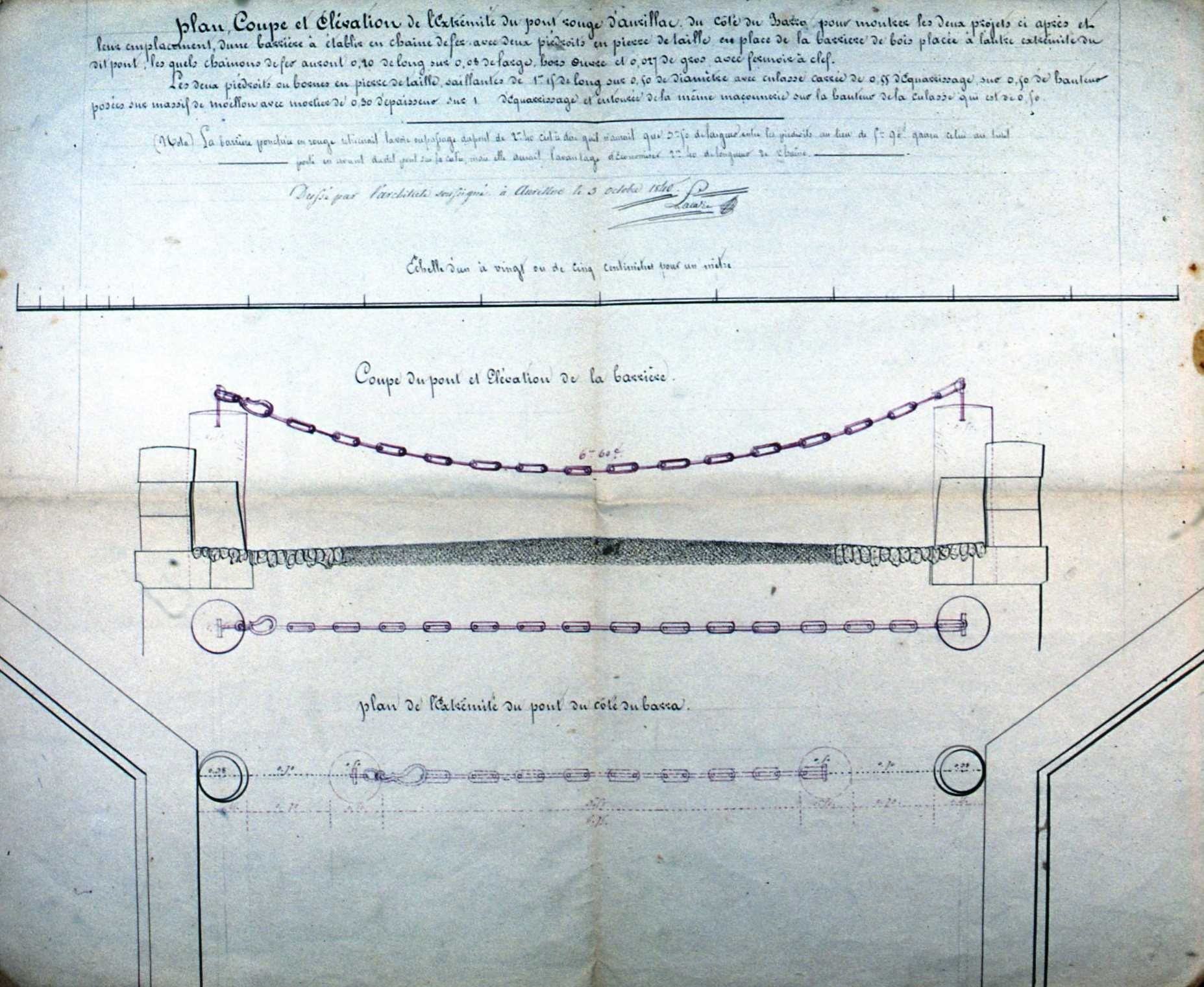 35 Fi 621, Plan et coupe du Pont Rouge. - Aurillac, 1993. - Couleur.