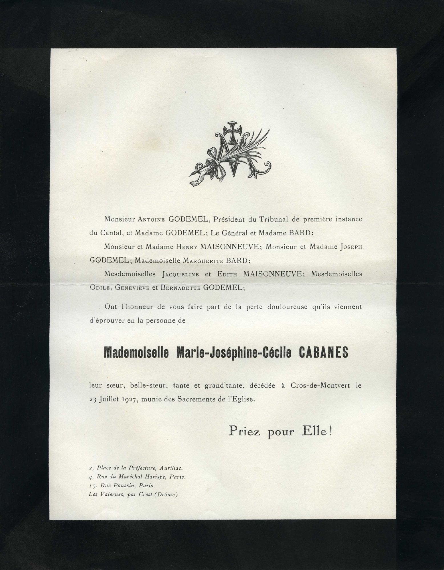 39 NUM 151, Mademoiselle Marie Joséphine Cécile Cabanes (....-1927)