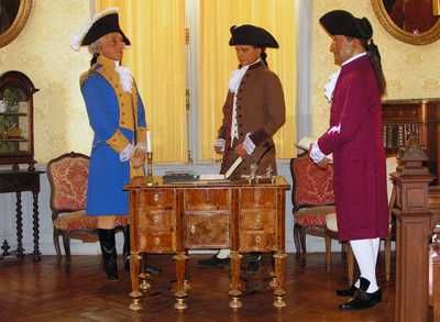 Mannequins de cire, provenant de l'ancien musée de cire d'Aurillac, représentant la réception du marquis de La Fayette à Pesteils par les autorités aurillacoises en 1787