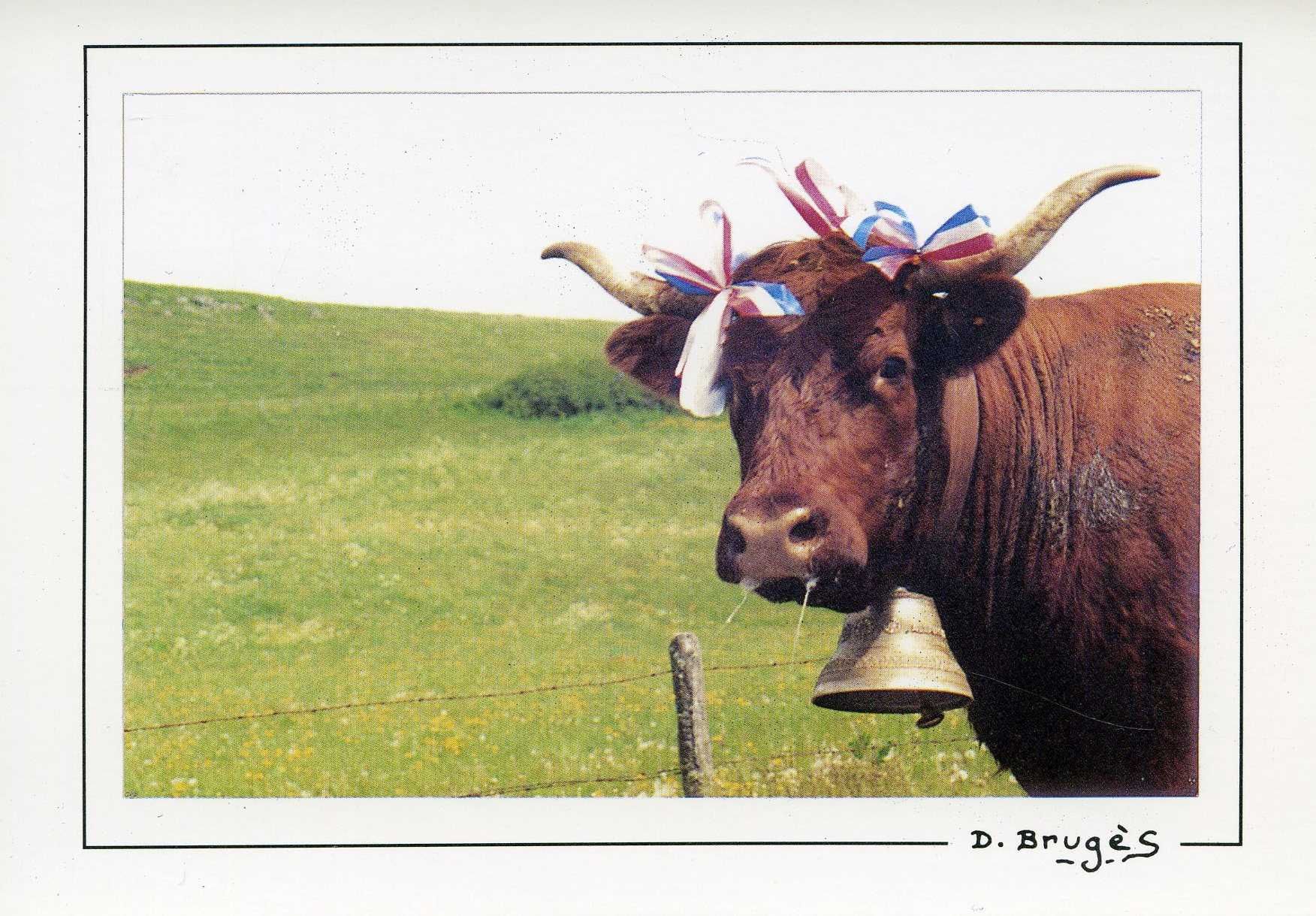 47 Fi 39, "Auvergne : une terre, des gens - N° 6 Vache Salers montant à l'estive" / Daniel Brugès. Photog. - Editions Daniel Brugès, Neuvéglise (imprimerie "La Dépêche d'Auvergne" - Saint-Flour)