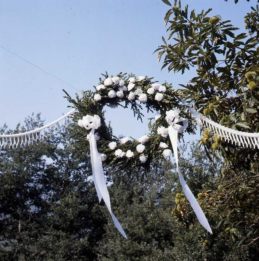 57 Fi 1-19 - 57 Fi : Fonds Jean Ribière - [1950]-2010 Divers 57 Fi 13 - Couronne de feuillage et de fleurs blanches formant le sommet d'un arc de fleurs au-dessus d'un chemin bordé de châtaigniers, dressé à l'occasion d'un mariage. - Ekta couleur, 6 x 6 cm - [1960-1970] 57 Fi 13, Couronne de feuillage et de fleurs blanches formant le sommet d'un arc de fleurs au-dessus d'un chemin bordé de châtaigniers, dressé à l'occasion d'un mariage. - Ekta couleur, 6 x 6 cm Cote 57 Fi 13 Date [1960-1970] Description physique Document iconographique Mots-clés matière Mariage Décoration florale Mots-clés personne Ribière, Jean (photographe) Permalien de la notice https://archives.cantal.fr:443/ark:16075/a011364301430oHTuxi.moteur=arko_default_5fbd06a9ae86c