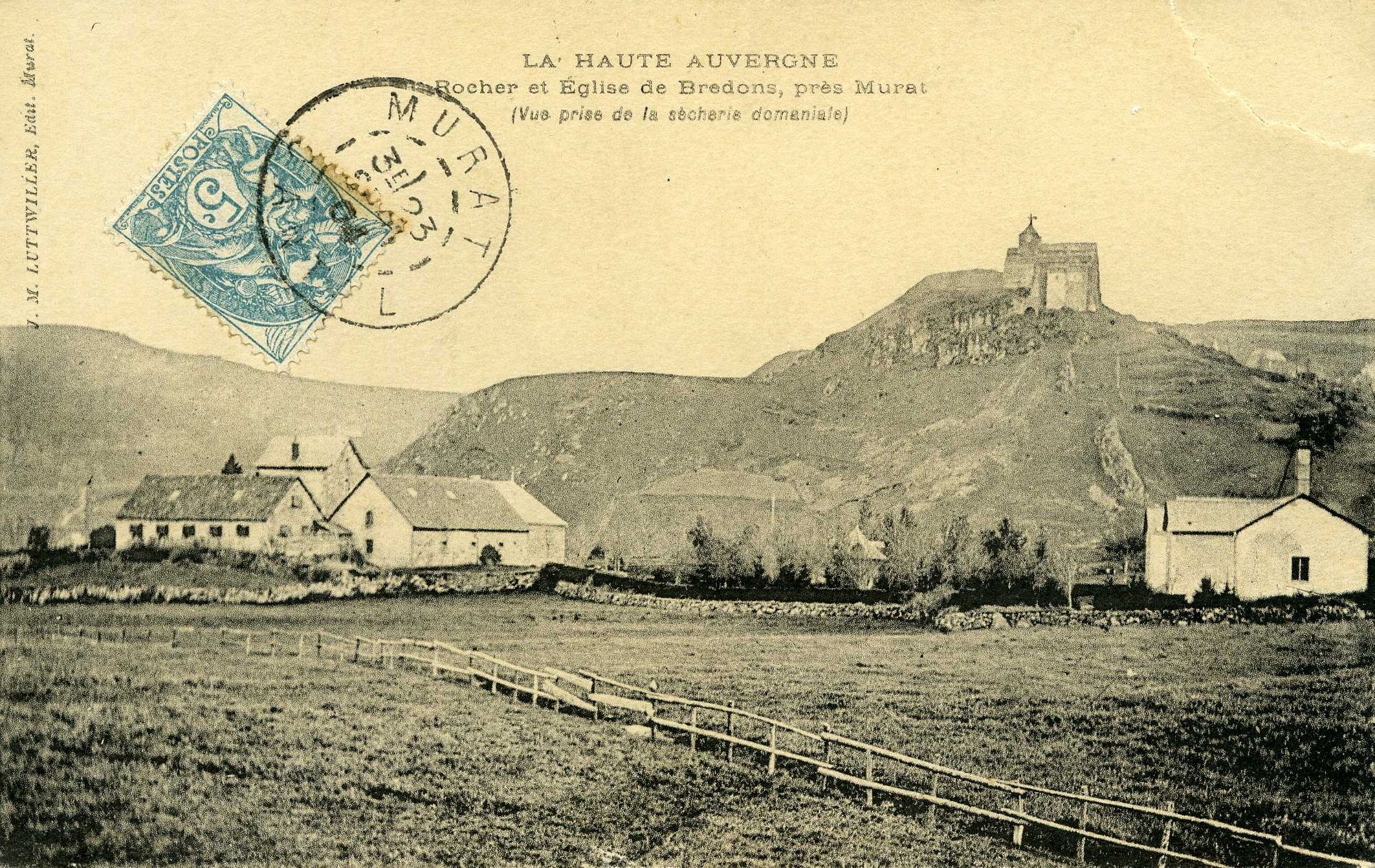 18 Fi 937, "La Haute Auvergne - Rocher et église de Bredons, près Murat (vue prise de la sécherie domaniale)".