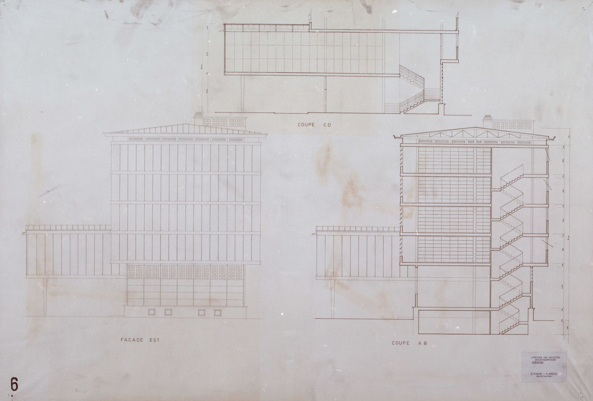 60 Fi 28, Coupe CD, façade est et coupe AB