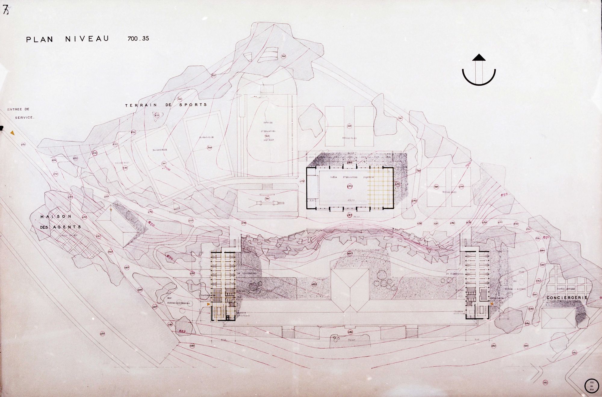 60 Fi 41, Plan niveau : salle d'éducation physique, terrains de sport, maison des agents et conciergerie