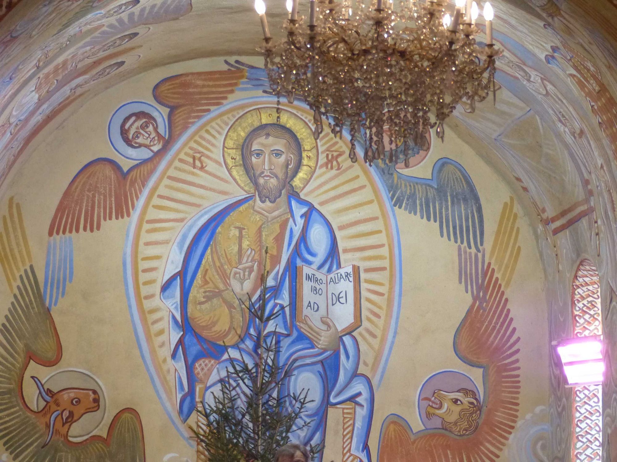 62 NUM 648 - Fresque du peintre russe Nicolaï Greschny représentant le Christ en majesté et le tétramorphe : l'homme de saint Mathieu, l'aigle de saint Jean, le taureau de saint Luc et le lion de saint Marc. - 21 décembre 2014