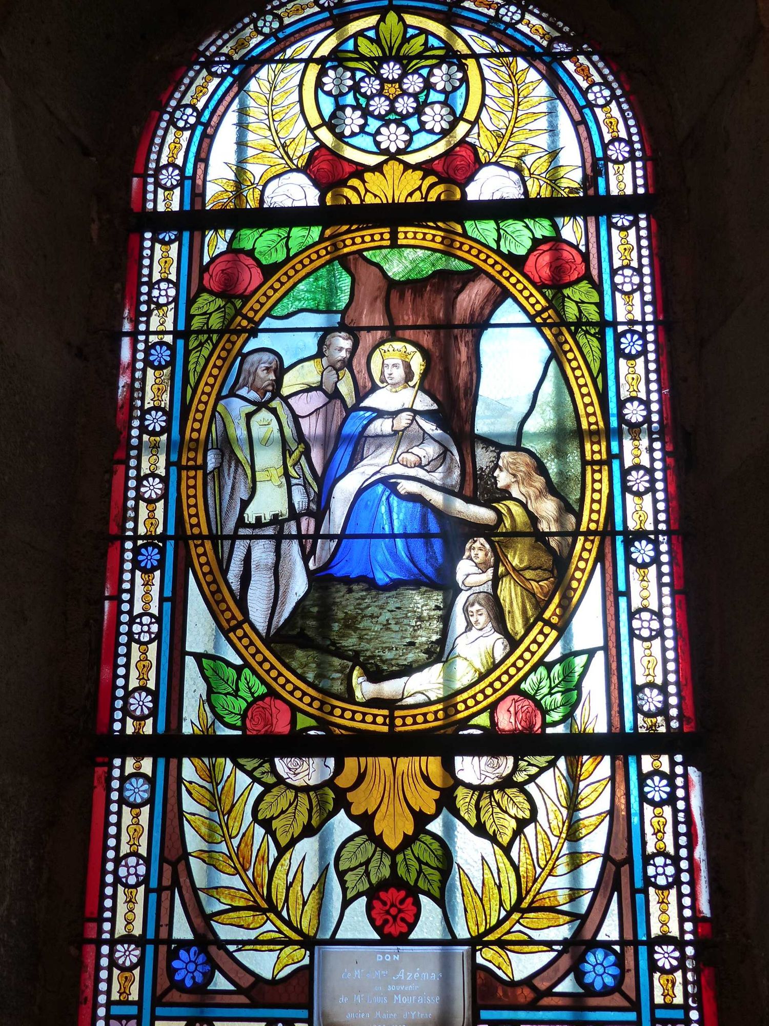 62 NUM 670, Vitrail figurant saint Louis rendant la justice sous son arbre.