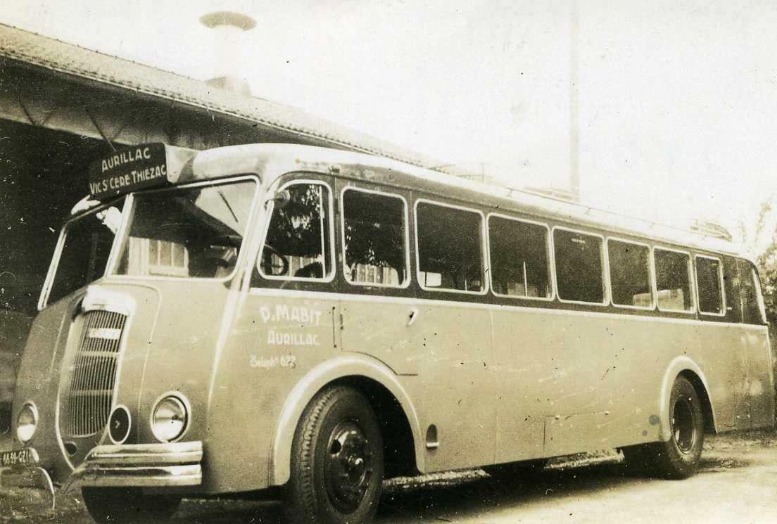 63 Fi 10, Autobus P. Mabit de la ligne Aurillac-Vic-sur-Cère-Thiézac devant le garage Nauche, 25 rue Paul Doumer à Aurillac