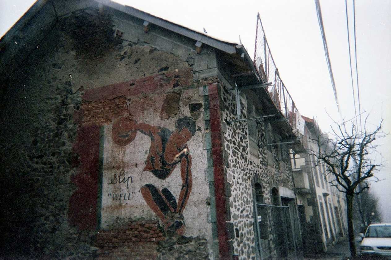 63 Fi 33-34, Publicité pour des slips de la marque Well, peinte sur les murs d'une maison au n° 11 de l'avenue de la Liberté à Aurillac. - Cliché Michel Bos63 Fi 33-34, Publicité pour des slips de la marque Well, peinte sur les murs d'une maison au n° 11 de l'avenue de la Liberté à Aurillac. - Cliché Michel Bos