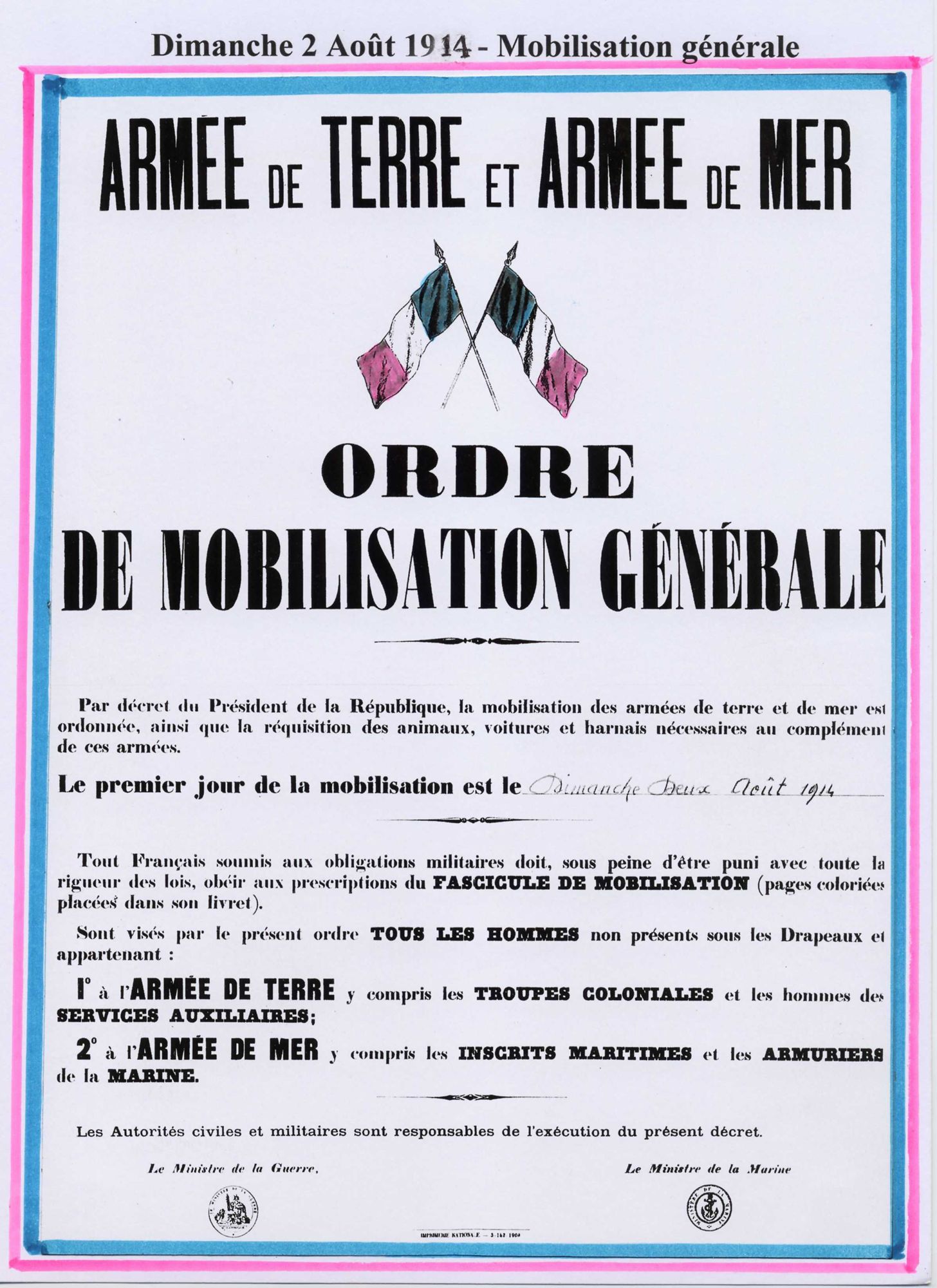 67 NUM 189, Dimanche 2 août 1914 : affiche donnant l'ordre de mobilisation générale.