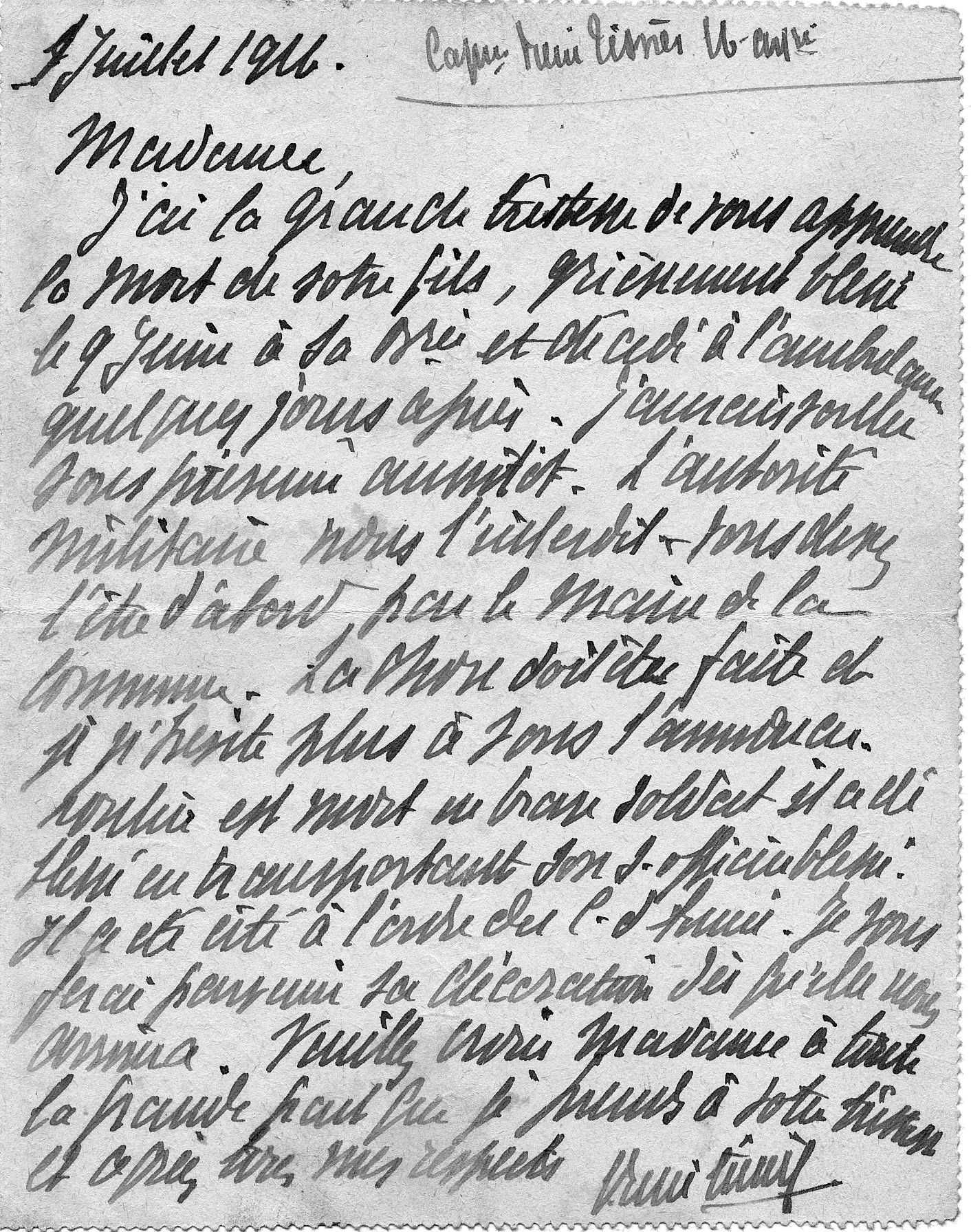 67 NUM 193, Lettre d'un officier annonçant la mort du soldat Loulier à sa mère.