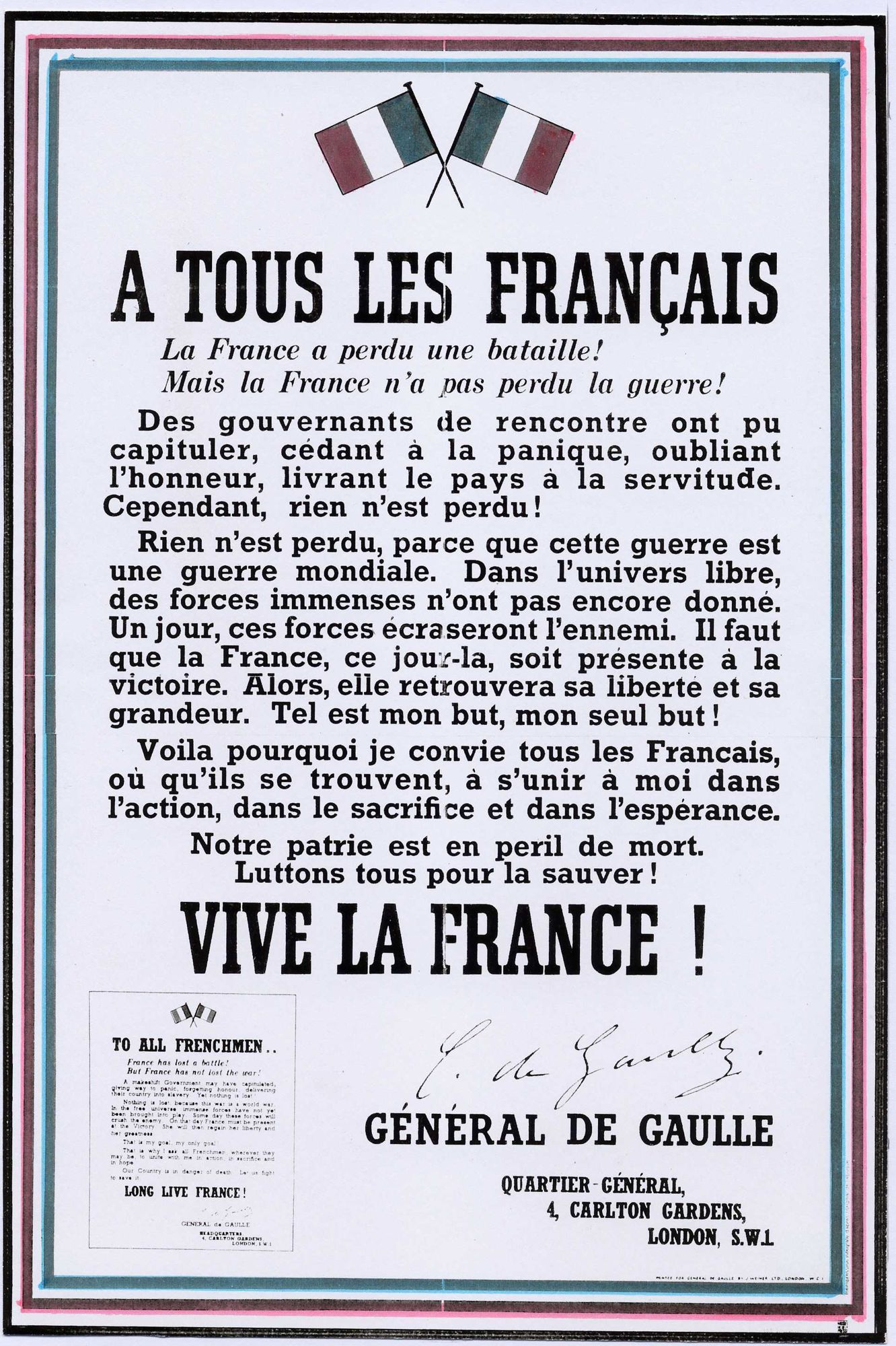 67 NUM 199, Reproduction de l'affiche de l'appel du 18 juin 1940.