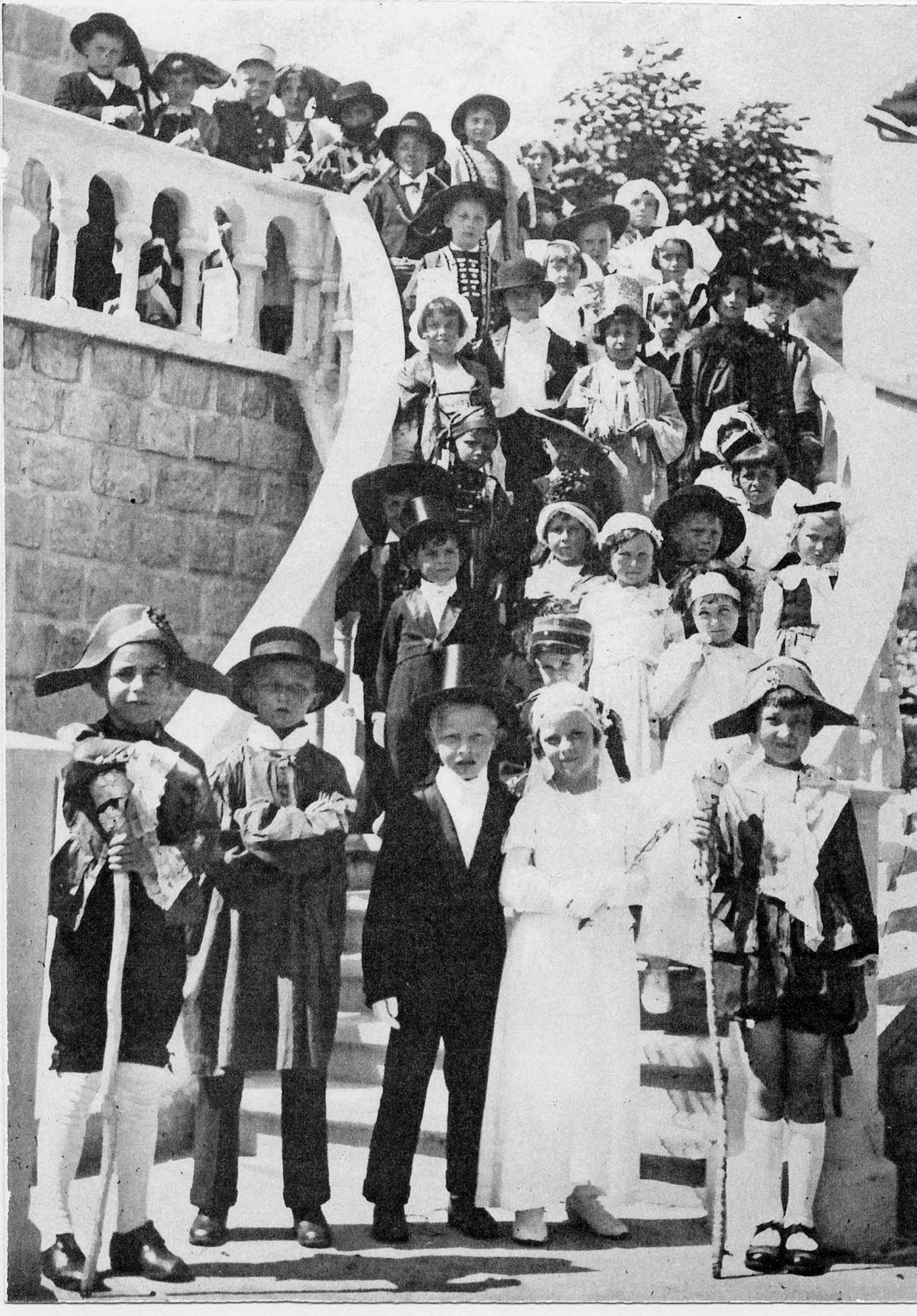 67 NUM 224, Paroisse de l'Hôpital-Ydes : groupe d'enfants déguisés à l'occasion de la kermesse.