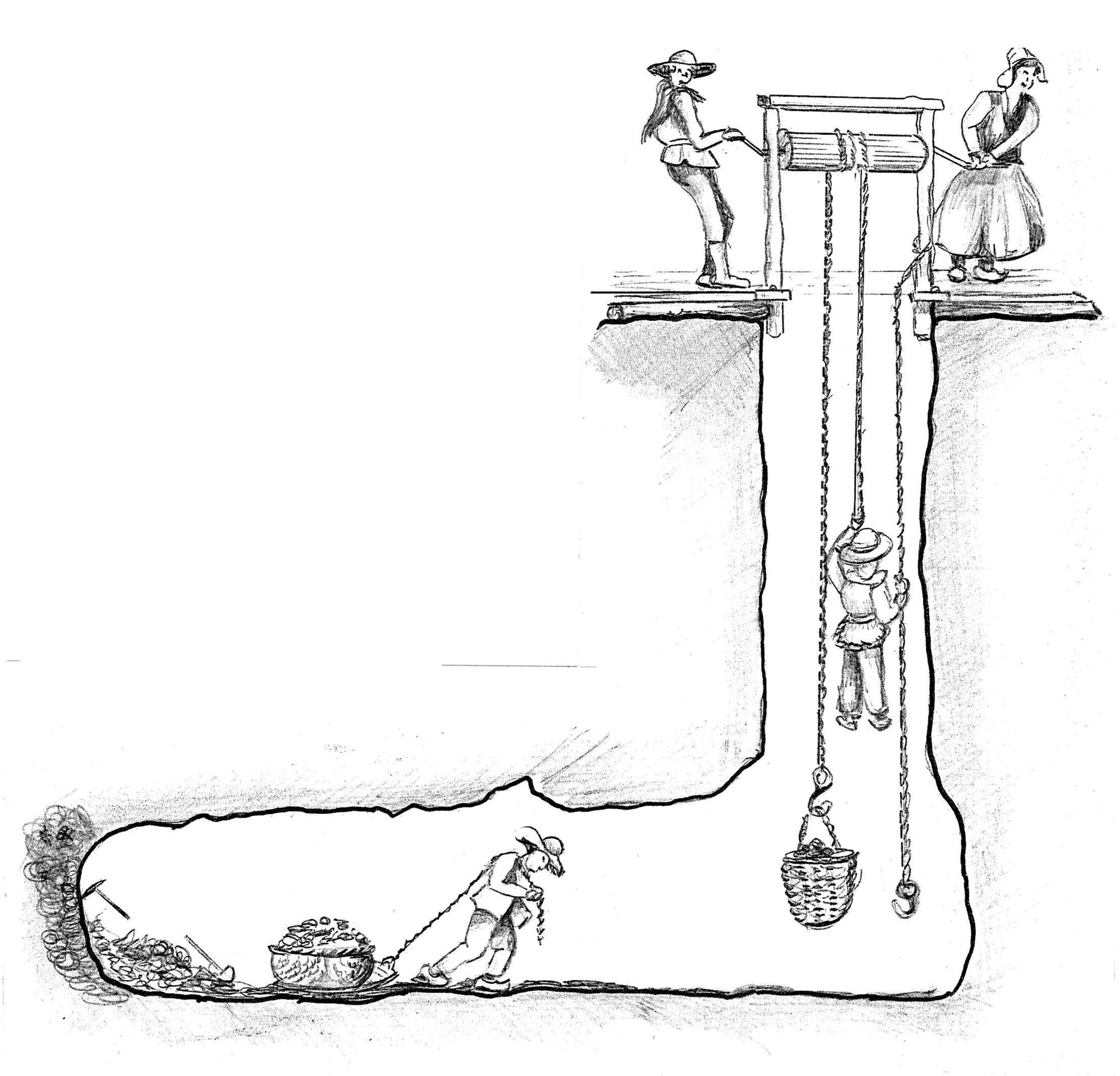 67 NUM 1-1349 - Fonds André Avrard (fichiers numériques) - XIXe siècle-2015 Illustrations des ouvrages et fascicules L'ère du charbon Thème 2 : Les concessions. Les puits 67 NUM 959 - Dessin représentant l'exploitation d'un puits au XVIIIe siècle : la descente s'effectuait par un treuil à manivelle et l'extraction du charbon se faisait par traînage dans des paniers en osier. - Sans date 67 NUM 959, Dessin représentant l'exploitation d'un puits au XVIIIe siècle : la descente s'effectuait par un treuil à manivelle et l'extraction du charbon se faisait par traînage dans des paniers en osier. Cote 67 NUM 959 Date Sans date Description physique Noir et blanc. Mots-clés matière Mineur Puits Concession Charbon Mines Mots-clés personne Avrard, André Permalien de la notice https://archives.cantal.fr:443/ark:16075/a011527490169QUCH5W.moteur=arko_default_5fbd06a9ae86c