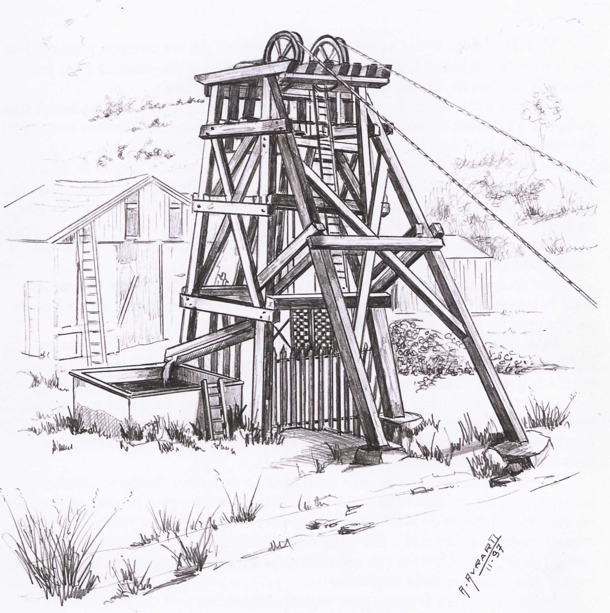 67 NUM 961, Dessin signé André Avrard représentant le puits Audiffret.