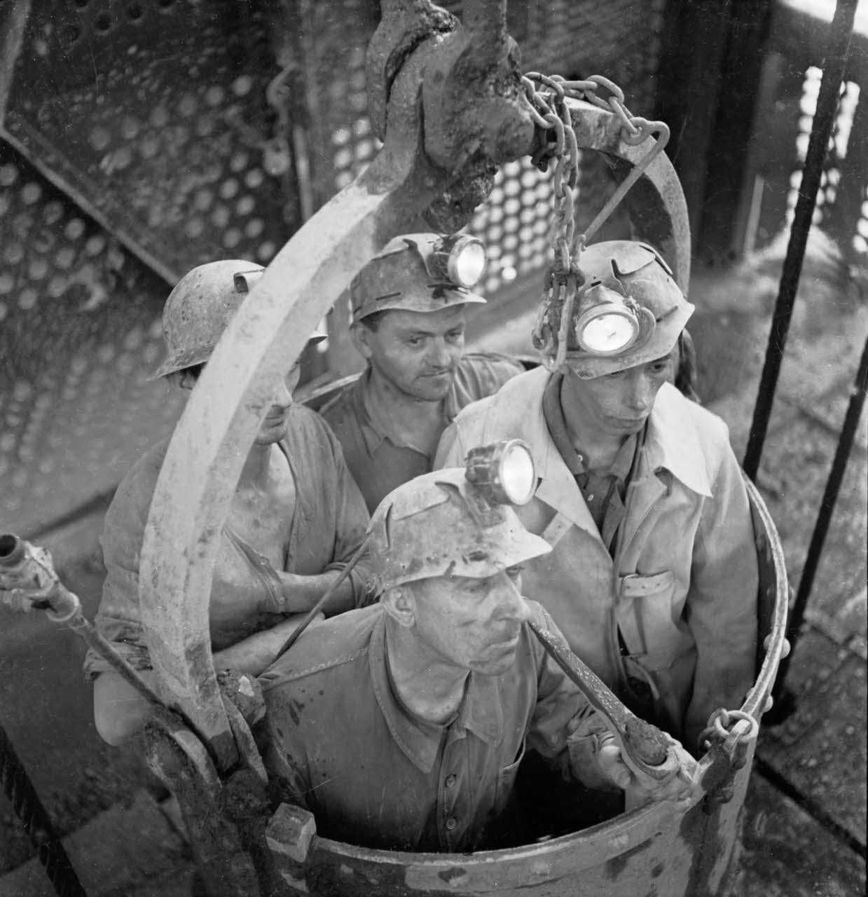 67 NUM 1027, Descente des mineurs dans un "cuffat", ancêtre des cages d'ascenseur.