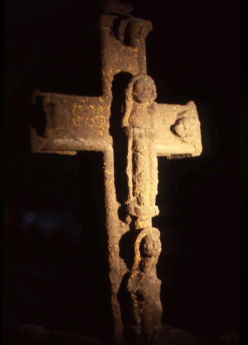 Cette croix provient du village de Fraissinet. Elle fut un temps transférée dans l'église, puis à l'extérieur sur la terrasse.