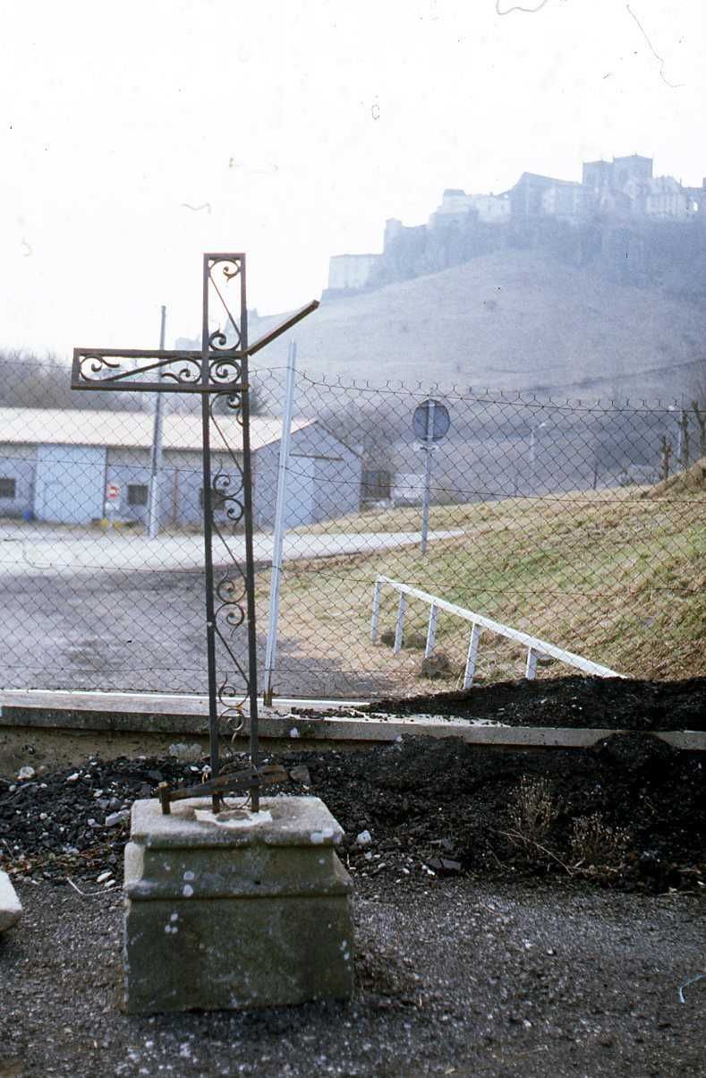 72 Fi 400, Vue de la croix en attente de restauration après une chute dans le Lander, suite à l'éboulement d'une partie du Pont Vieux.