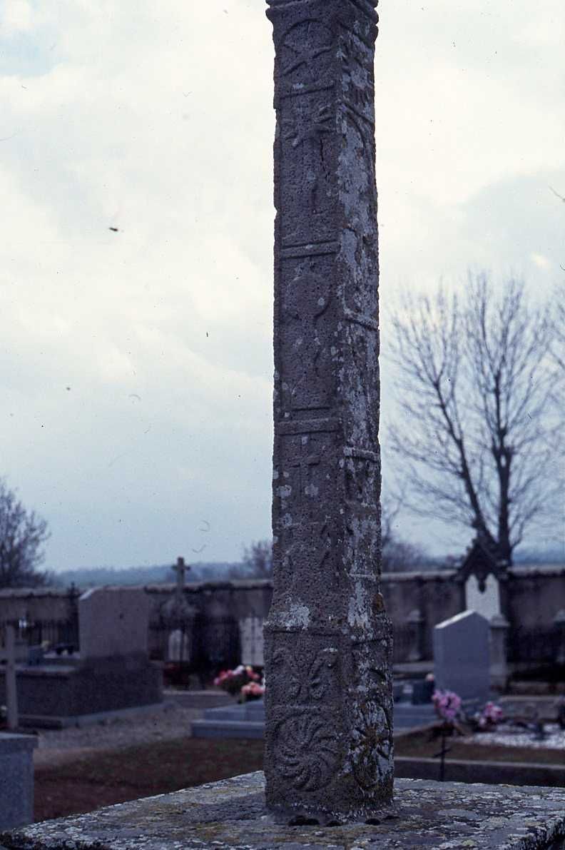 72 Fi 306, Détails du fût sur la face droite : soleil, fleur de lys, croix, calice, ostensoir, étoile.
