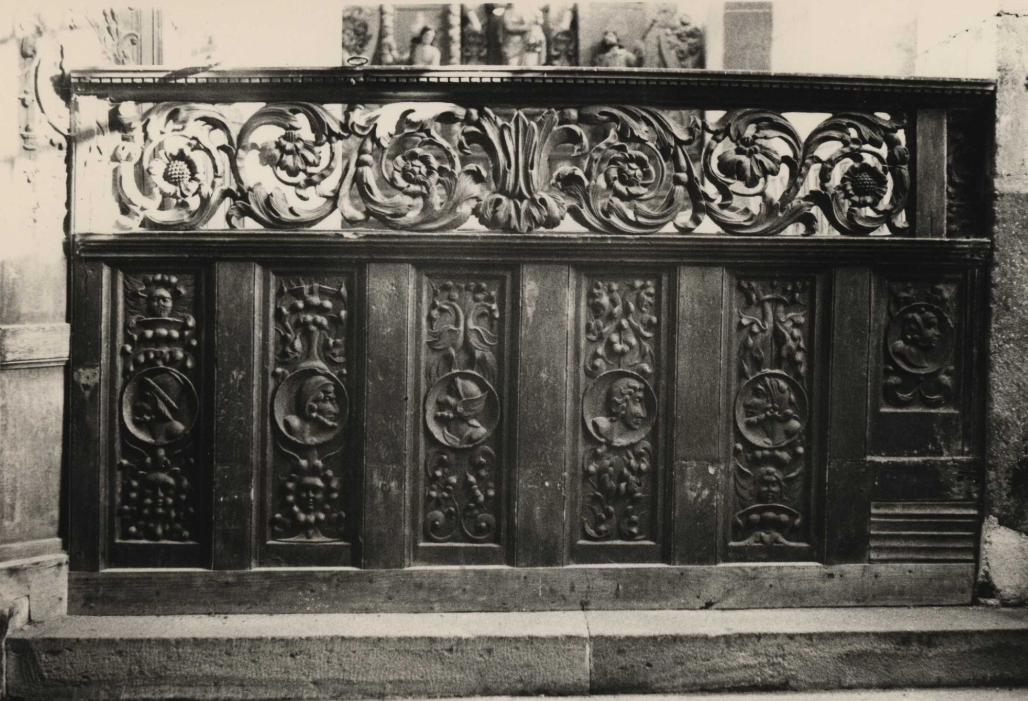 89 Fi 214, Boiseries sculptées à droite du chœur.