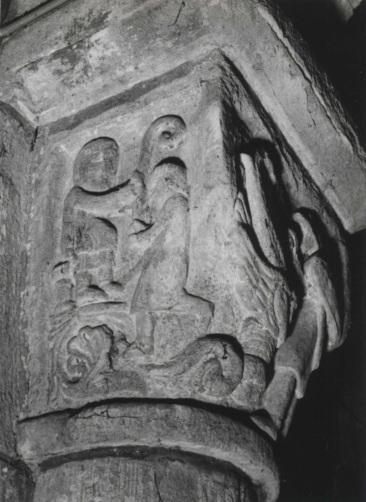 89 Fi 429, Chapiteau sculpté : clerc recevant sa charge sous la forme d'une crosse.
