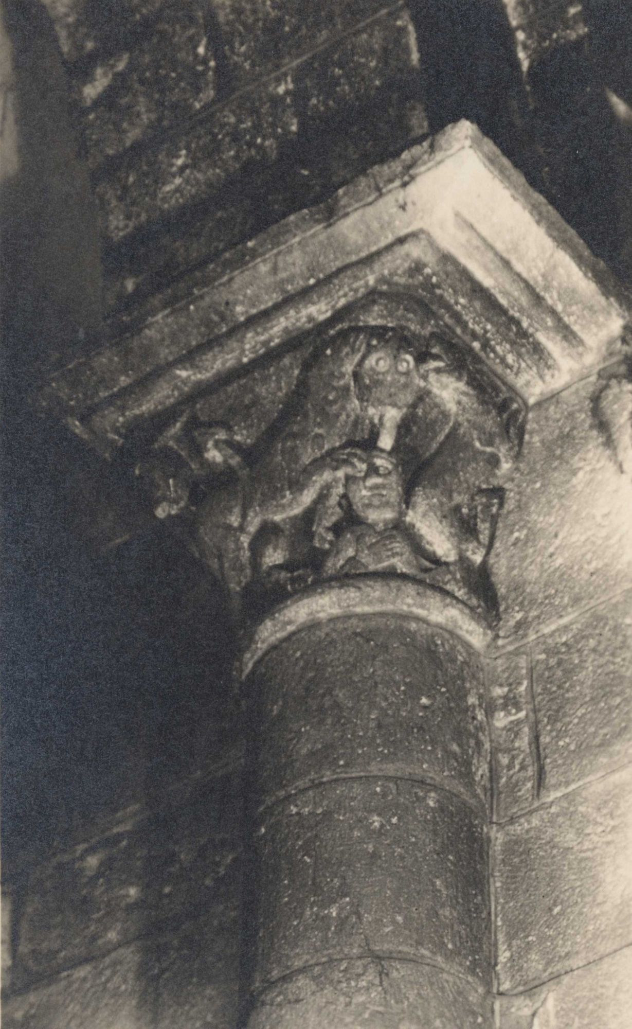 89 Fi 615, Chapiteau du chœur symbolisant le châtiment de l'orgueilleux. - Cliché F. Bost.