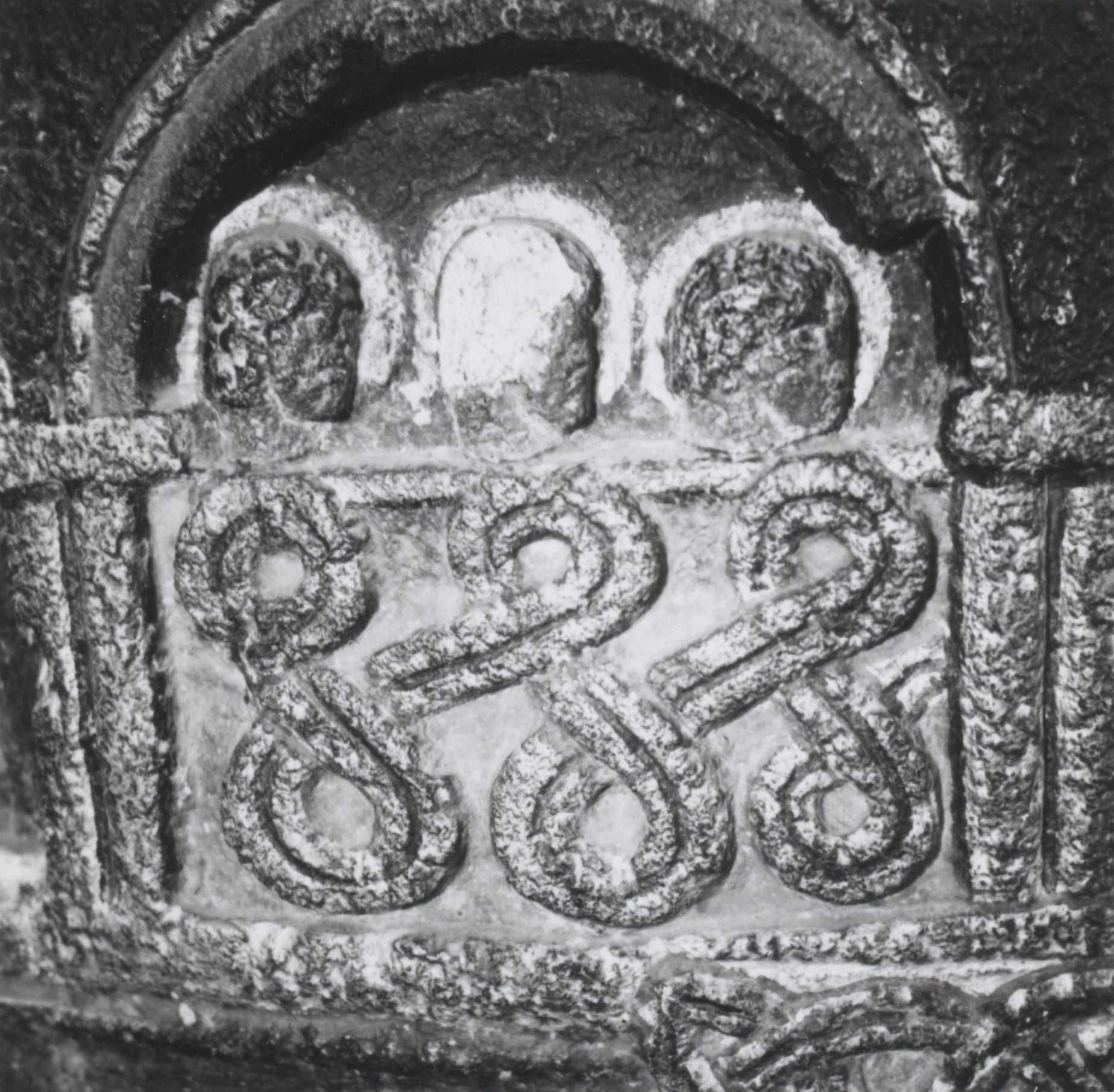 89 Fi 622, Cuve baptismale : personnages nimbés dans une cuve ou une rivière.