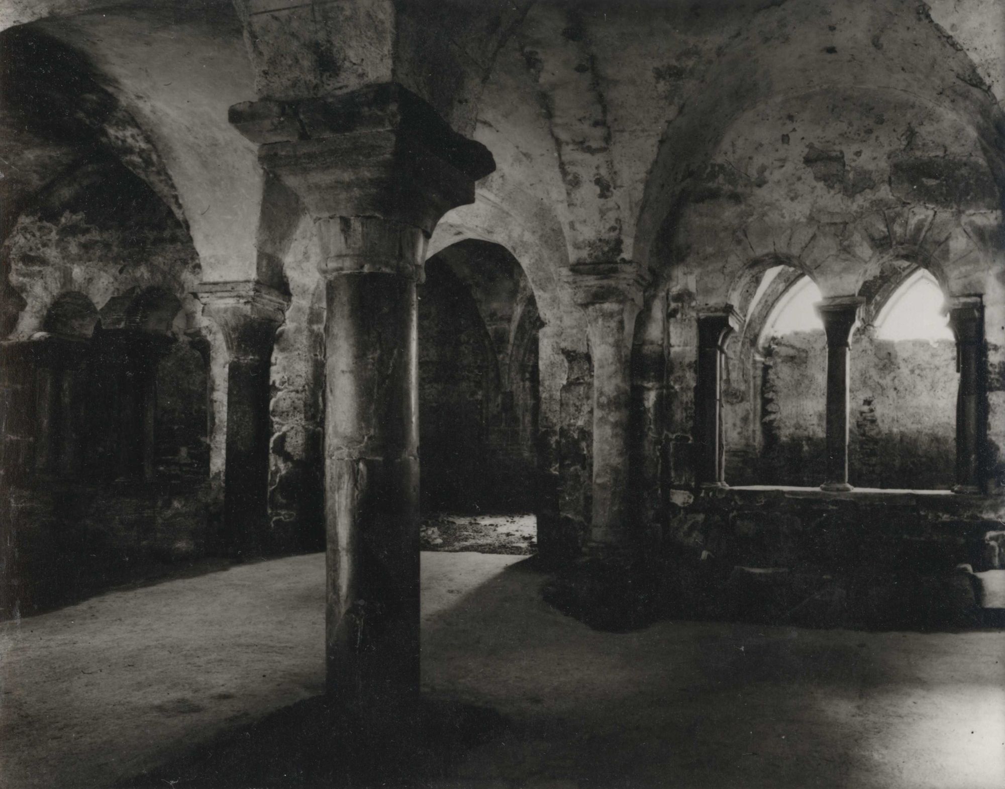 89 Fi 645, Salle capitulaire, porte et baies romanes donnant sur le cloître. - Cliché J. Davi.