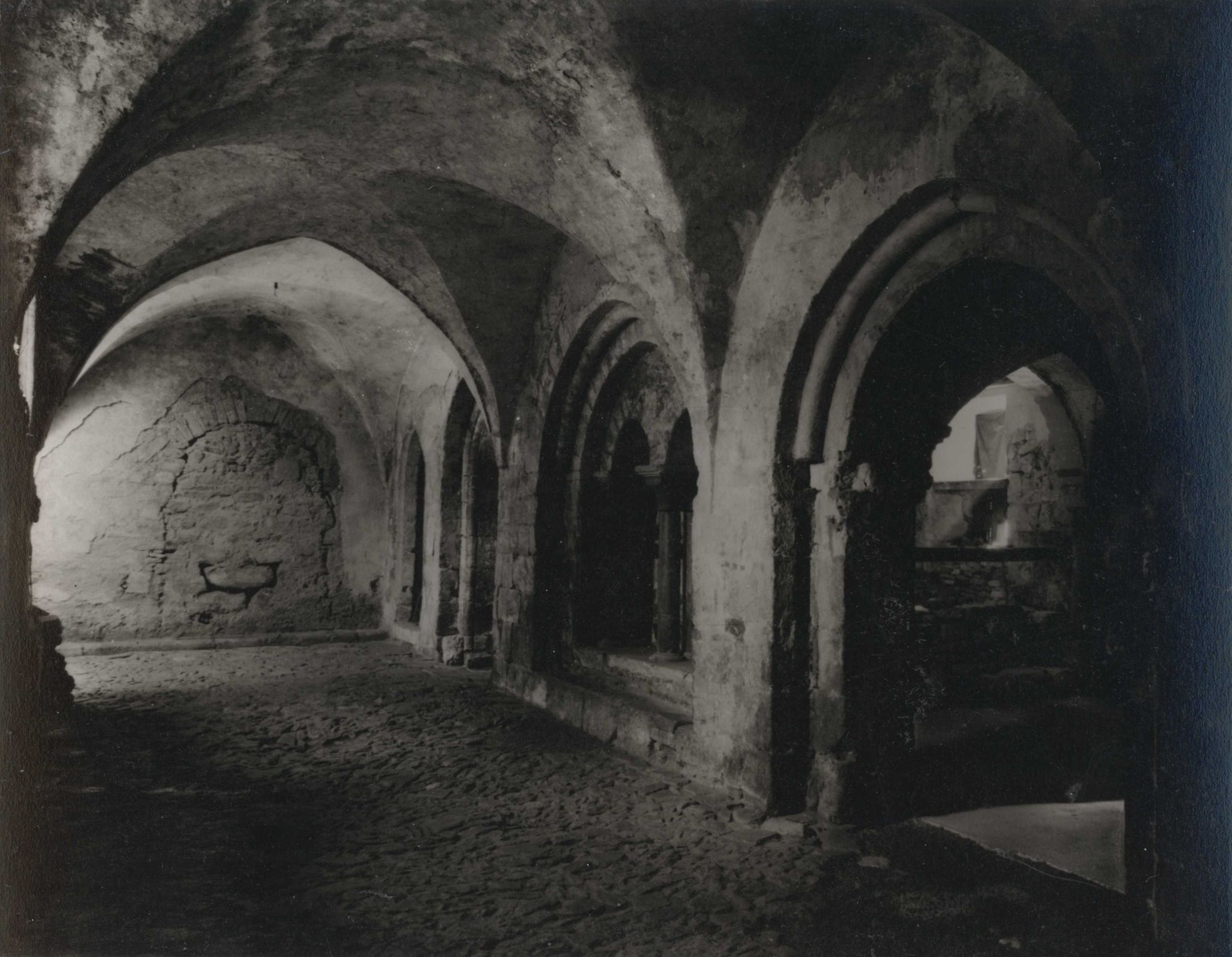 89 Fi 647, Salle capitulaire, porte et baies romanes donnant sur le cloître. - Cliché J. Davi.