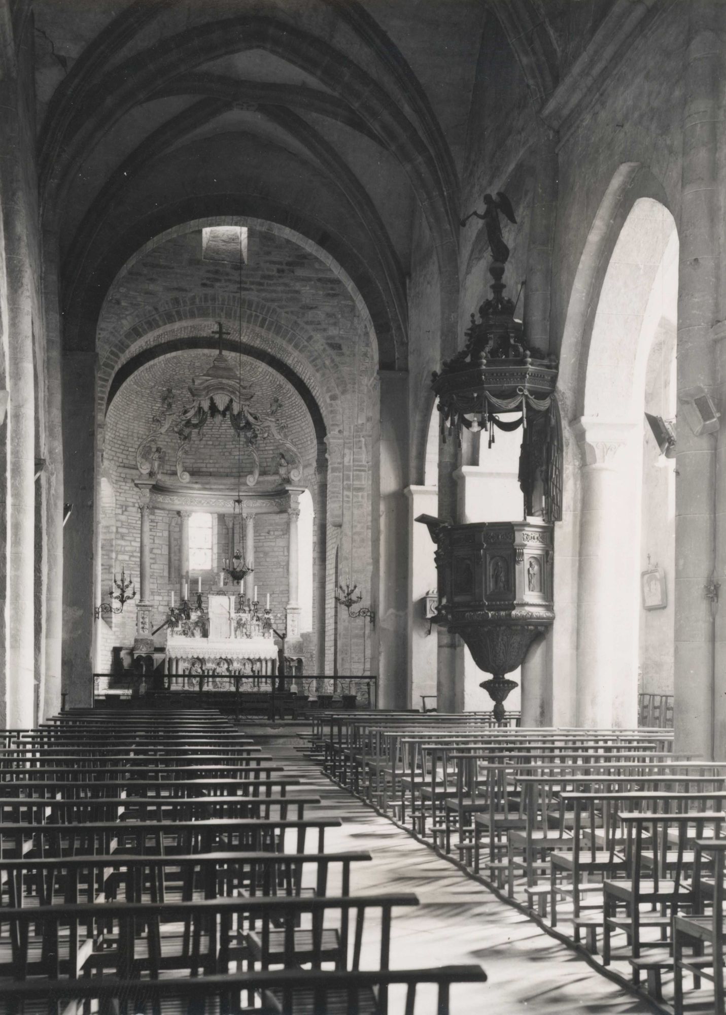 89 Fi 738, Vue d'ensemble de la nef. - Cliché Masson, Entraygues.