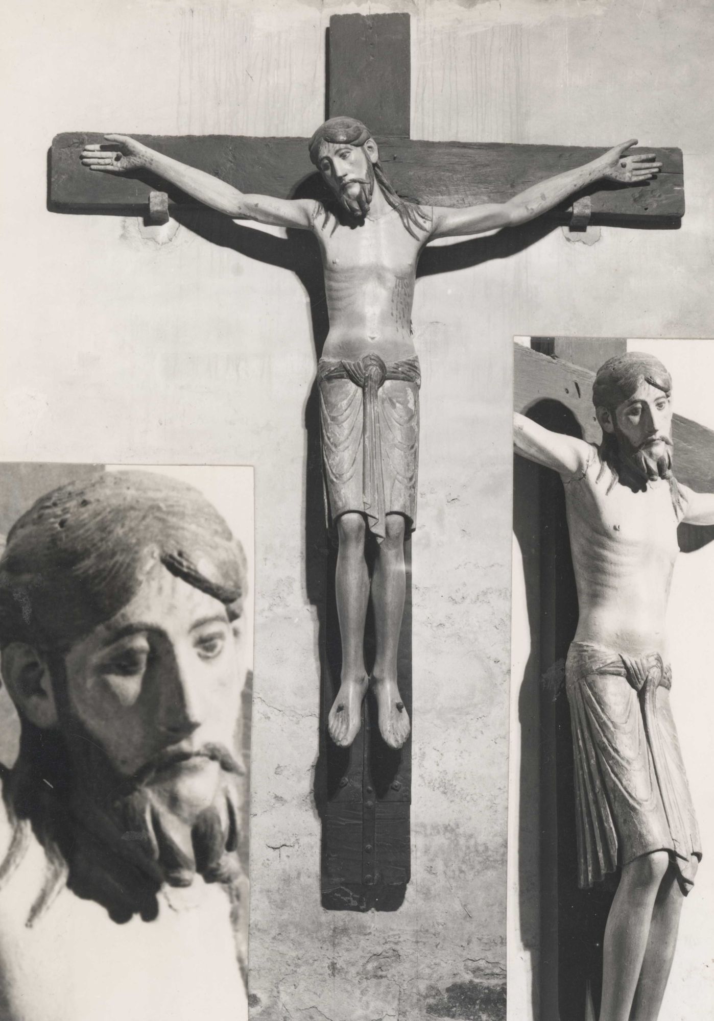 89 Fi 756, Christ en croix : vue d'ensemble et détail du visage. - Cliché Masson, Entraygues.