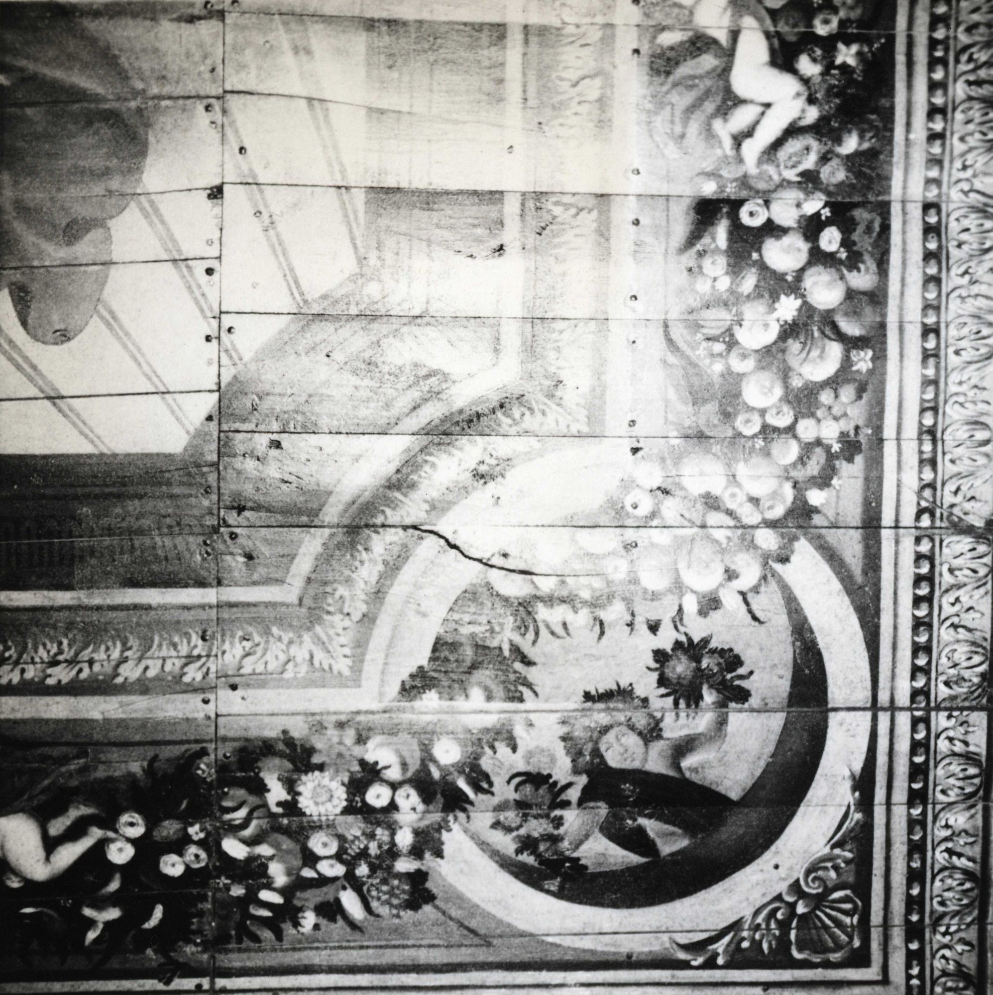 89 Fi 948, Plafond peint de la chambre dite de "La chute d'Icare" : médaillon représentant un angelot.