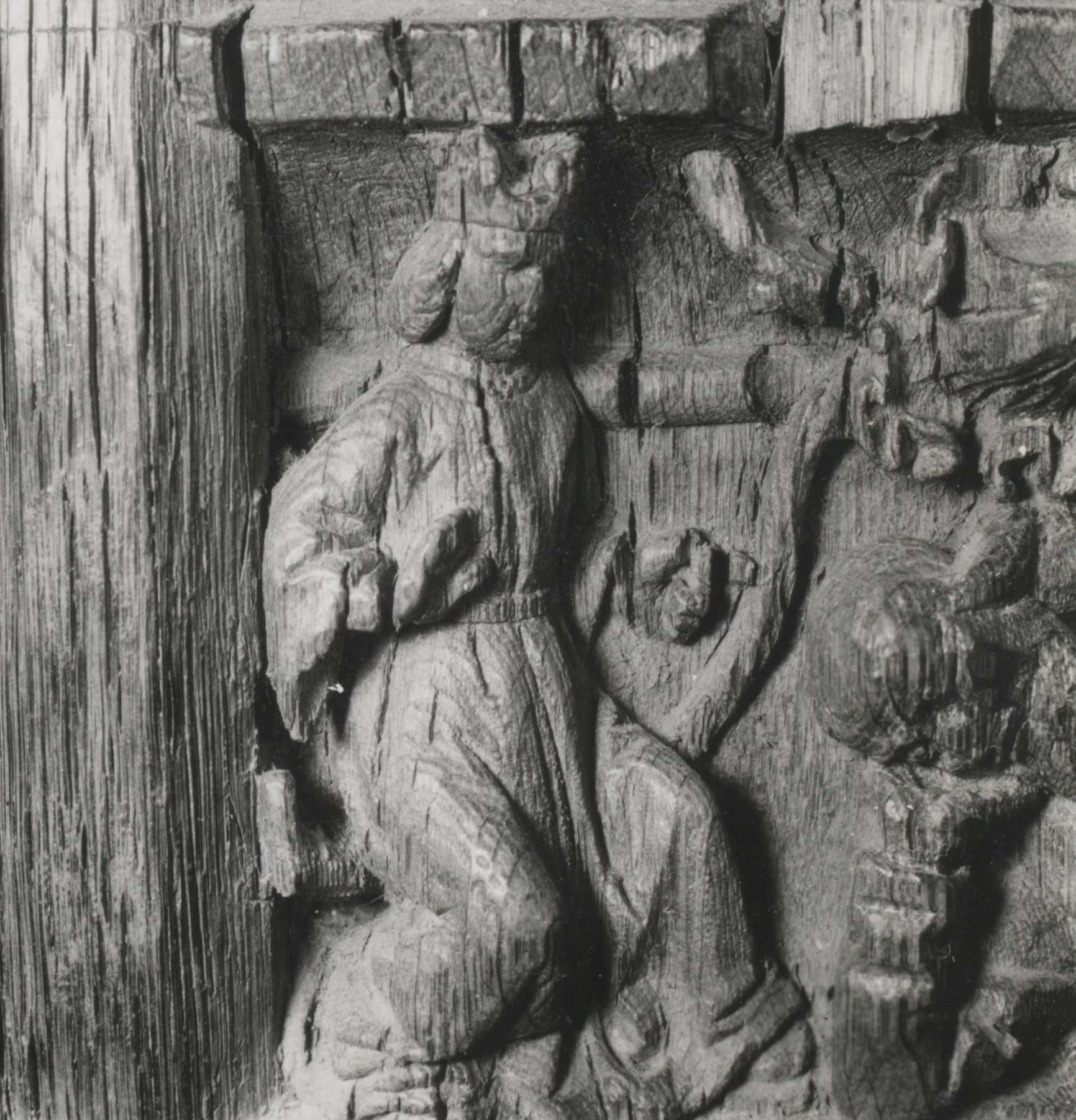 89 Fi 1085, Stalles provenant du chapitre de Saint-Chamant : personnage assis et couronné.