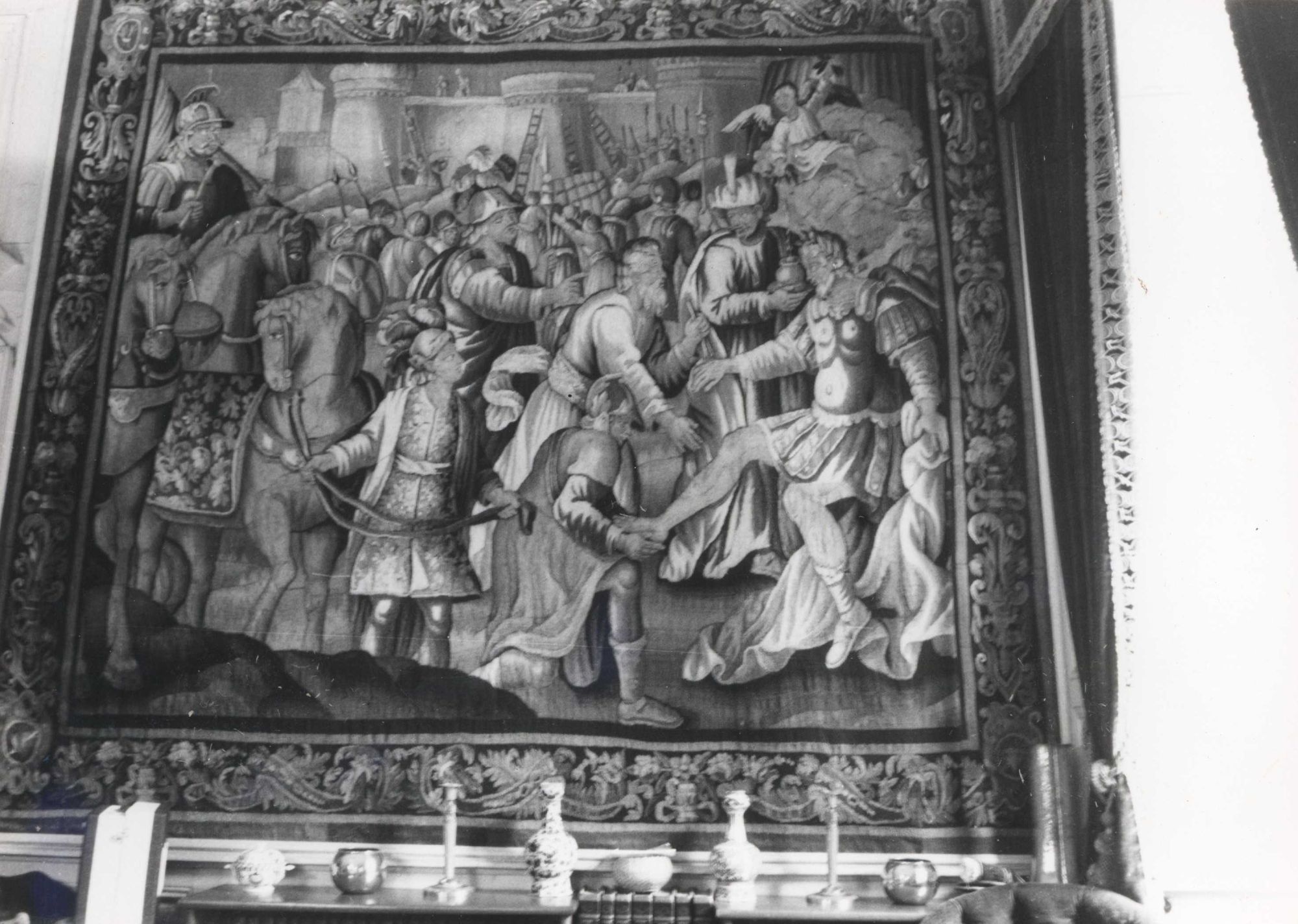 89 Fi 1899, Tapisserie de la salle de billard : Godefroy de Bouillon blessé au siège de Jérusalem. - Cliché G. de Bussac.