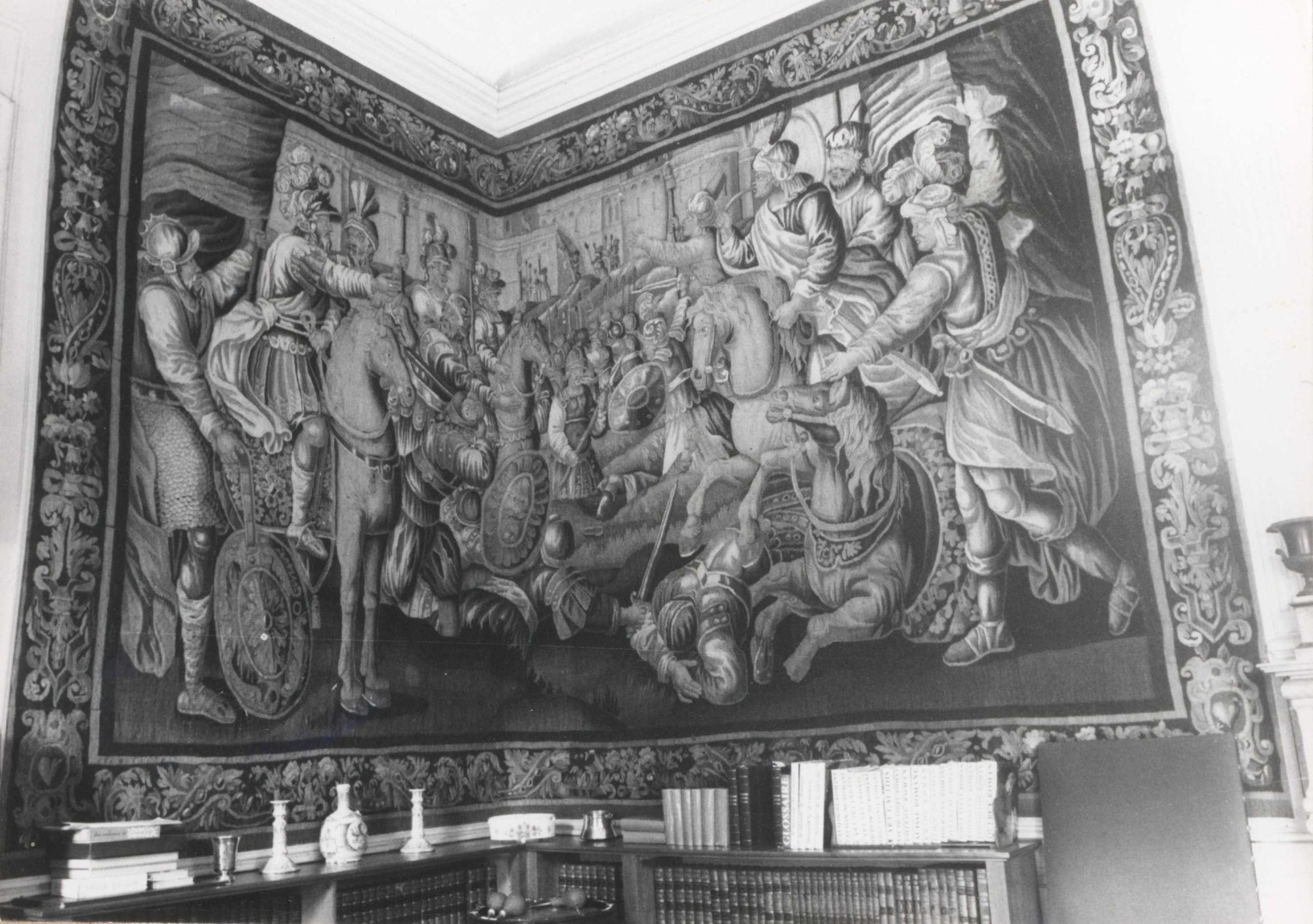 89 Fi 1901, Tapisserie de la salle de billard : Godefroy de Bouillon face aux Sarrazins devant Jérusalem assiégée. - Cliché G. de Bussac.