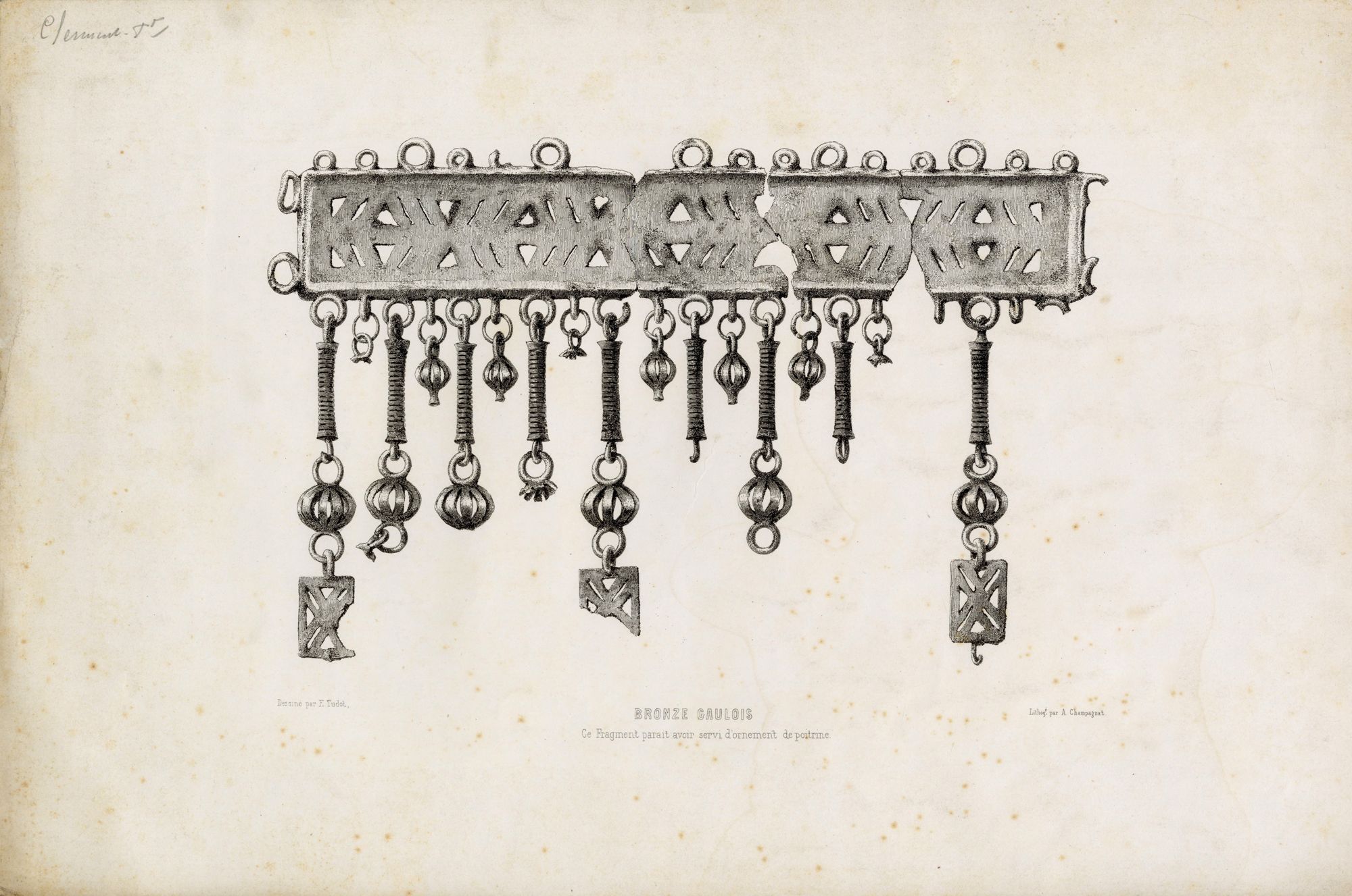 28 J 1/1-560 ; 28 J 2/1-450 ; 28 J 3/1-26 - Fonds Alphonse Aymar - 1282-1927 Cartes et documents figurés (formats supérieurs à 24 x 30 cm) Documents figurés classés par matière Archéologie gauloise 28 J 1/52 - Bronzes gaulois, dessinés par Edmond Tudot, lithographiés par André Champagnat.. - 29 x 45 cm. - Sans date 28 J 1/52, Bronzes gaulois, dessinés par Edmond Tudot, lithographiés par André Champagnat.. - 29 x 45 cm. Cote 28 J 1/52 Date Sans date Mots-clés lieu Gaule Mots-clés matière Archéologie Lithographe Dessinateur Mots-clés personne Champagnat, André (lithographe) Tudot, Edmond Aymar, Alphonse (1865-1927) Permalien de la notice https://archives.cantal.fr:443/ark:16075/a0114896664648MoGiQ.moteur=arko_default_5fbd06a9ae86c