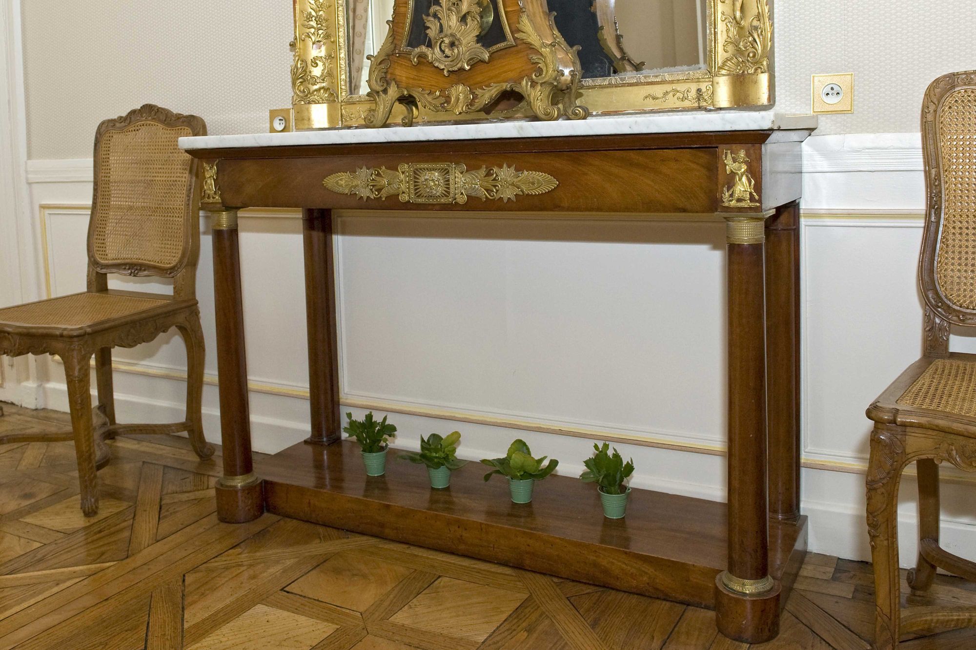 41 NUM 39, Console dont les parements en bronze doré illustrent le vocabulaire iconographique de l'Empire