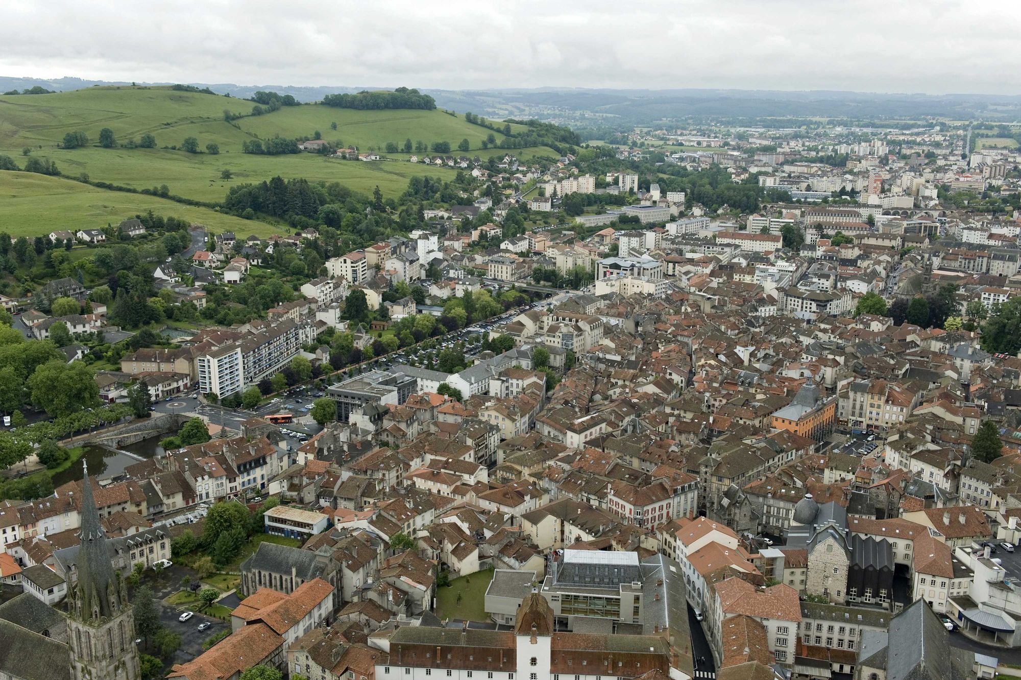 41 NUM 185, Vue générale d'Aurillac et du Puy Courny prise en survolant le quartier Saint-Géraud