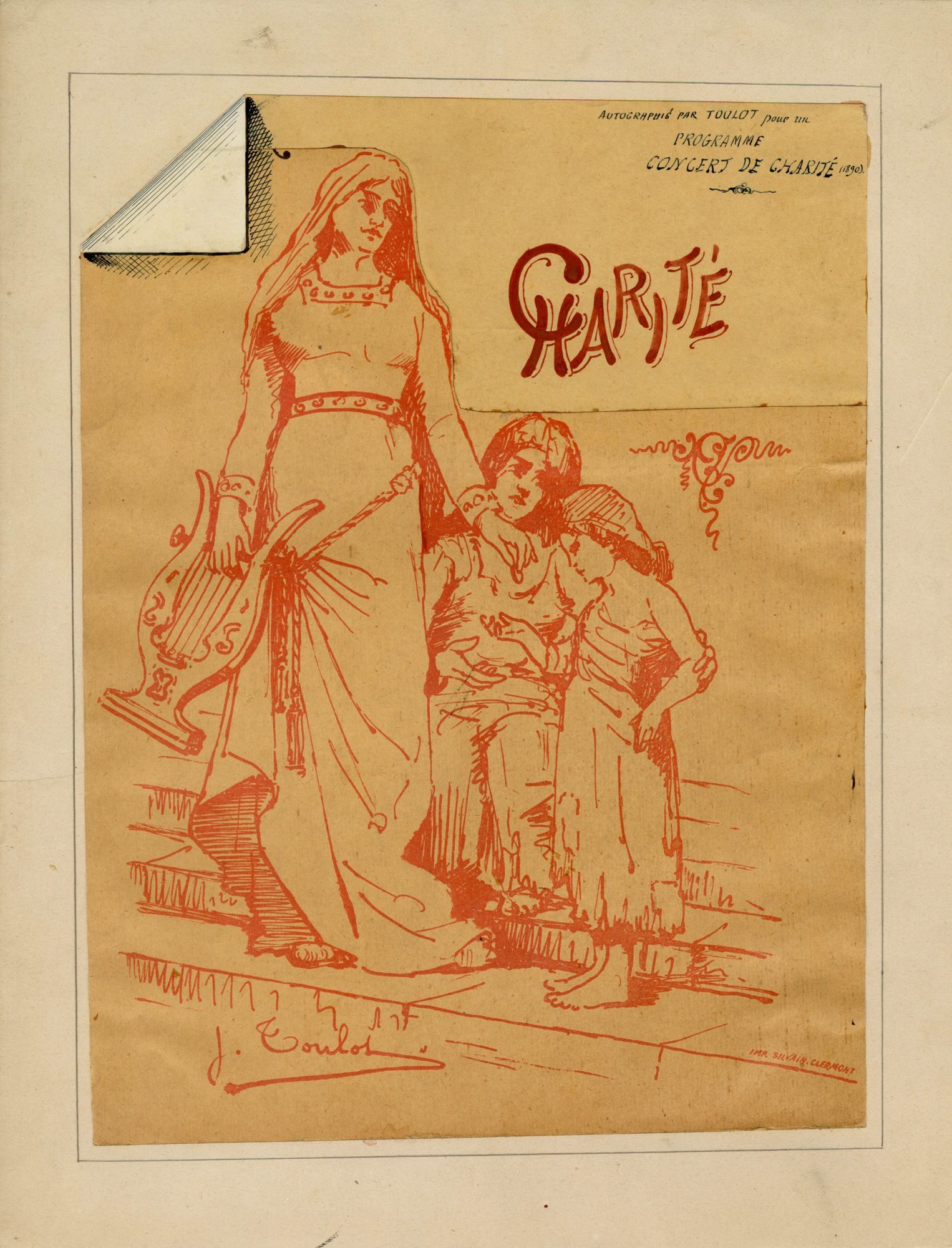 28 J 1/1-560 ; 28 J 2/1-450 ; 28 J 3/1-26 - Fonds Alphonse Aymar - 1282-1927 Cartes et documents figurés (formats supérieurs à 24 x 30 cm) Documents figurés classés par matière Musique 28 J 1/198 - "Charité", reproduction d'un dessin de Jules Toulot pour le programme d'un concert de charité (1890) : musicienne faisant l'aumône. - Imprimerie Silvain, Clermont. - 31 x 23 cm. - 1890 28 J 1/198, "Charité", reproduction d'un dessin de Jules Toulot pour le programme d'un concert de charité (1890) : musicienne faisant l'aumône. - Imprimerie Silvain, Clermont. - 31 x 23 cm. Cote 28 J 1/198 Date 1890 Mots-clés matière Dessinateur Costume Mots-clés personne Toulot, Jules (dessinateur) Aymar, Alphonse (1865-1927) Permalien de la notice https://archives.cantal.fr:443/ark:16075/a0114896664647S1Eul.moteur=arko_default_5fbd06a9ae86c